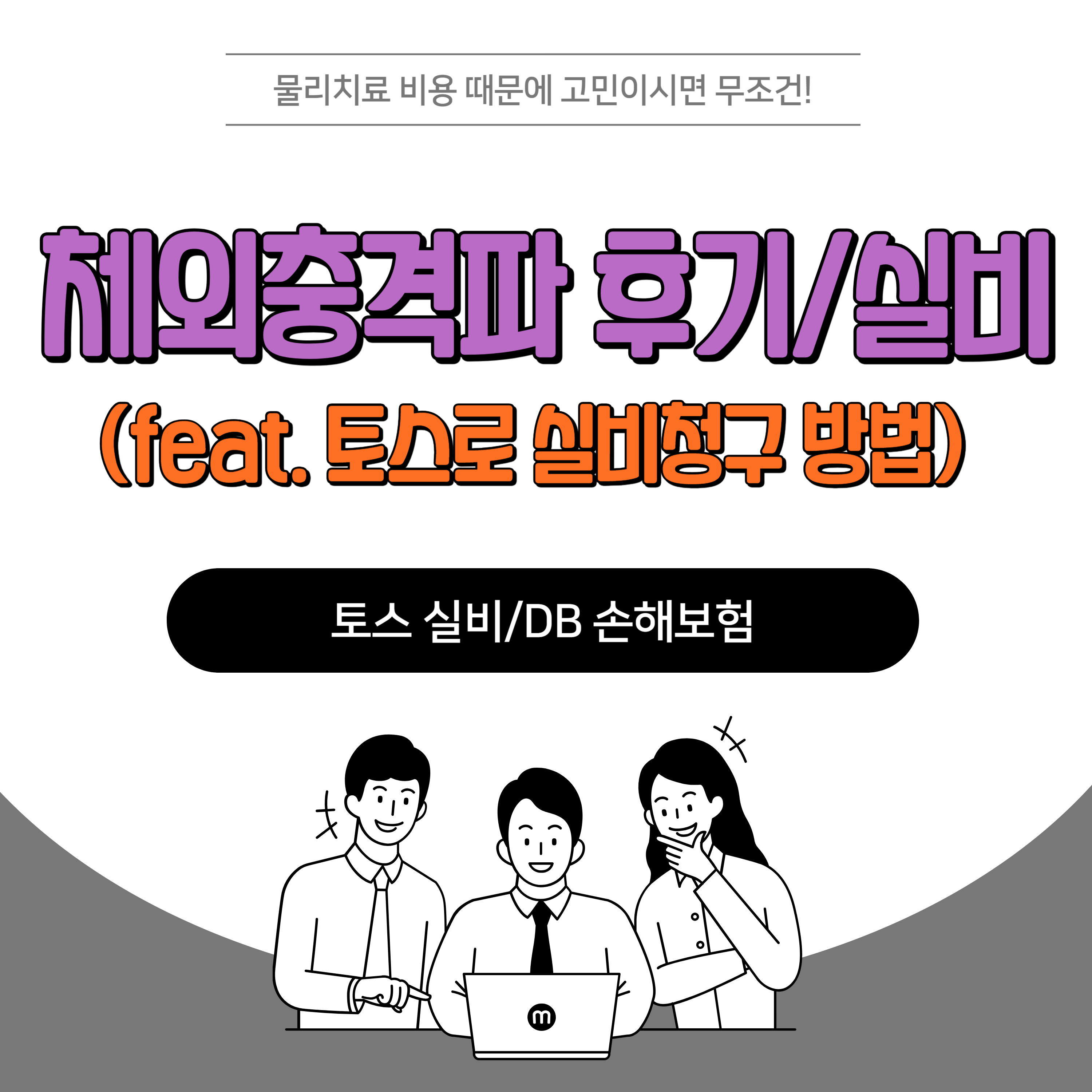 그래서 오늘은 체외 충격파 물리치료 후기와 제가 들어있는 DB 손해보험의 실비를 소개해드리면서, 마지막으로 토스로 간편하게 신청하는 방법까지 알려드리겠습니다.