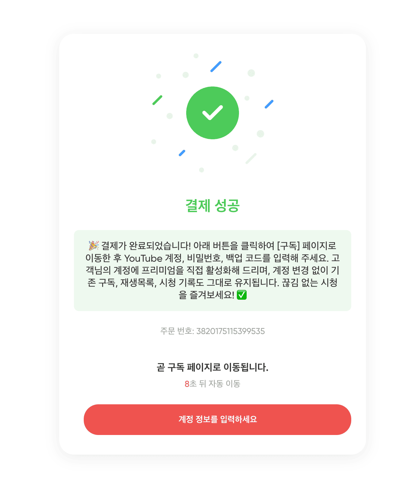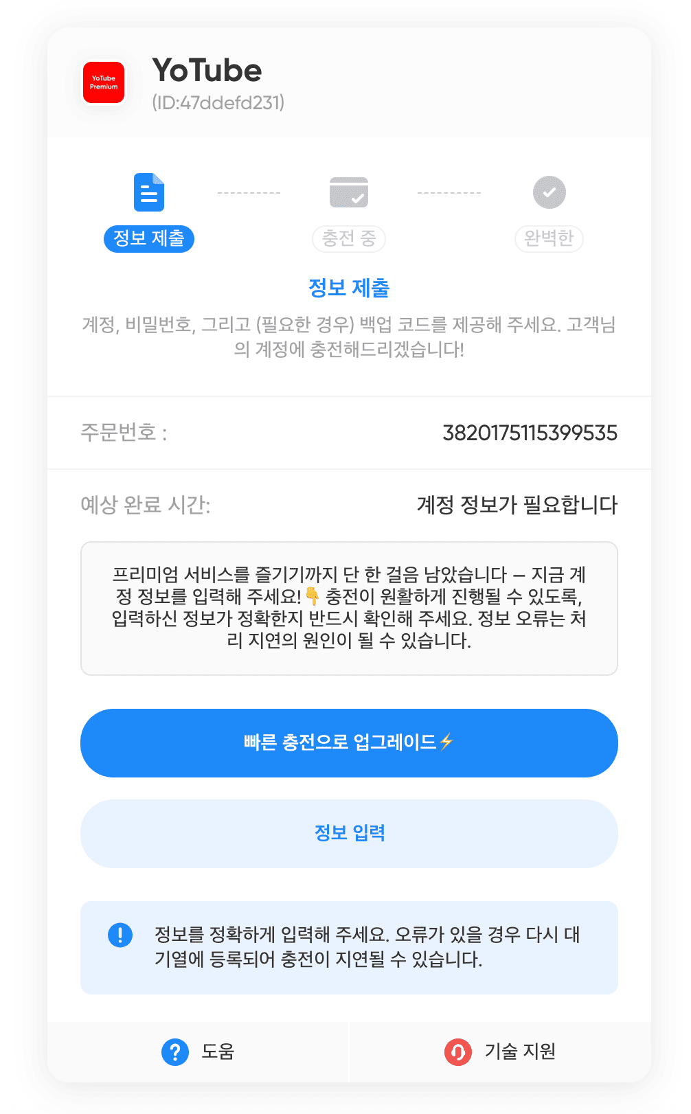 결제는 모두 끝났으니, 겜스고 쪽으로 유튜브 아이디 관련 정보를 전달 해줘야합니다. 겜스고 측에서 하나하나 확인하면서, 계정에 결제를 해주는 시스템이기 때문입니다.