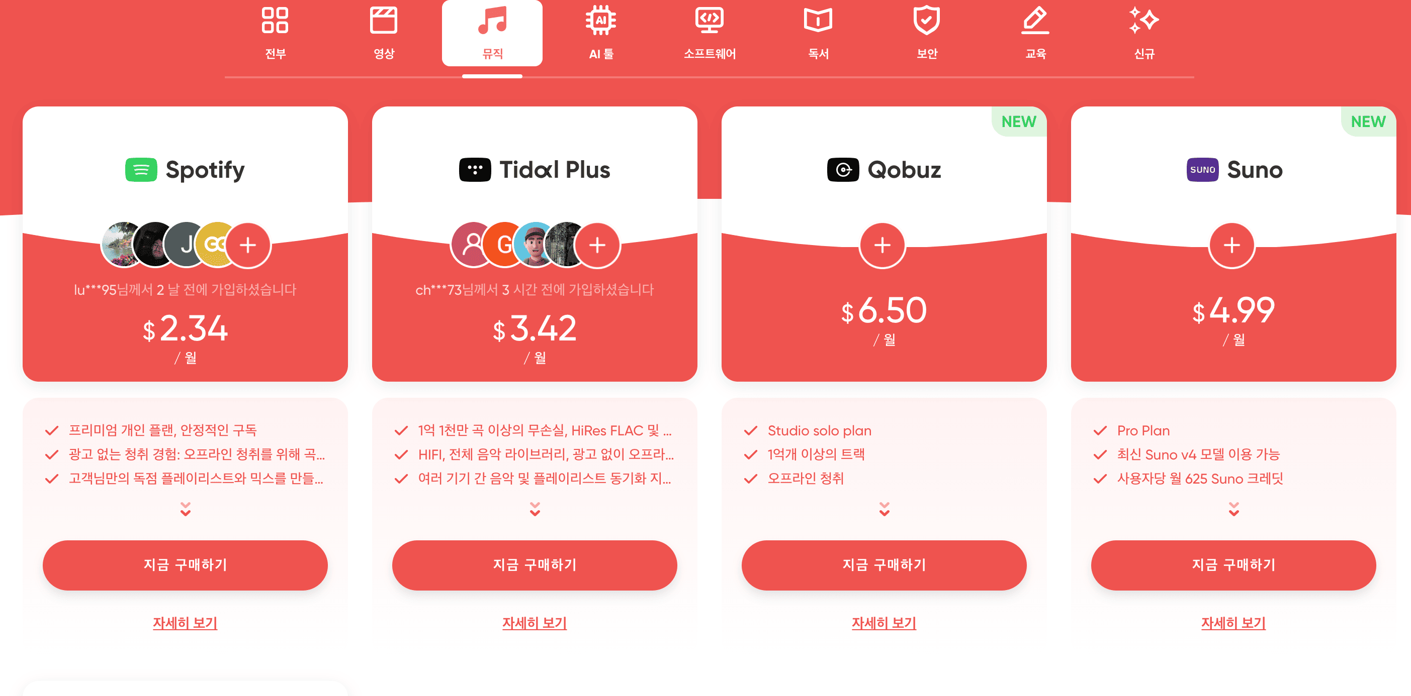 | 유튜브 프리미엄 | 3,900원 | 10,450원 | 광고 제거·백그라운드 재생 |