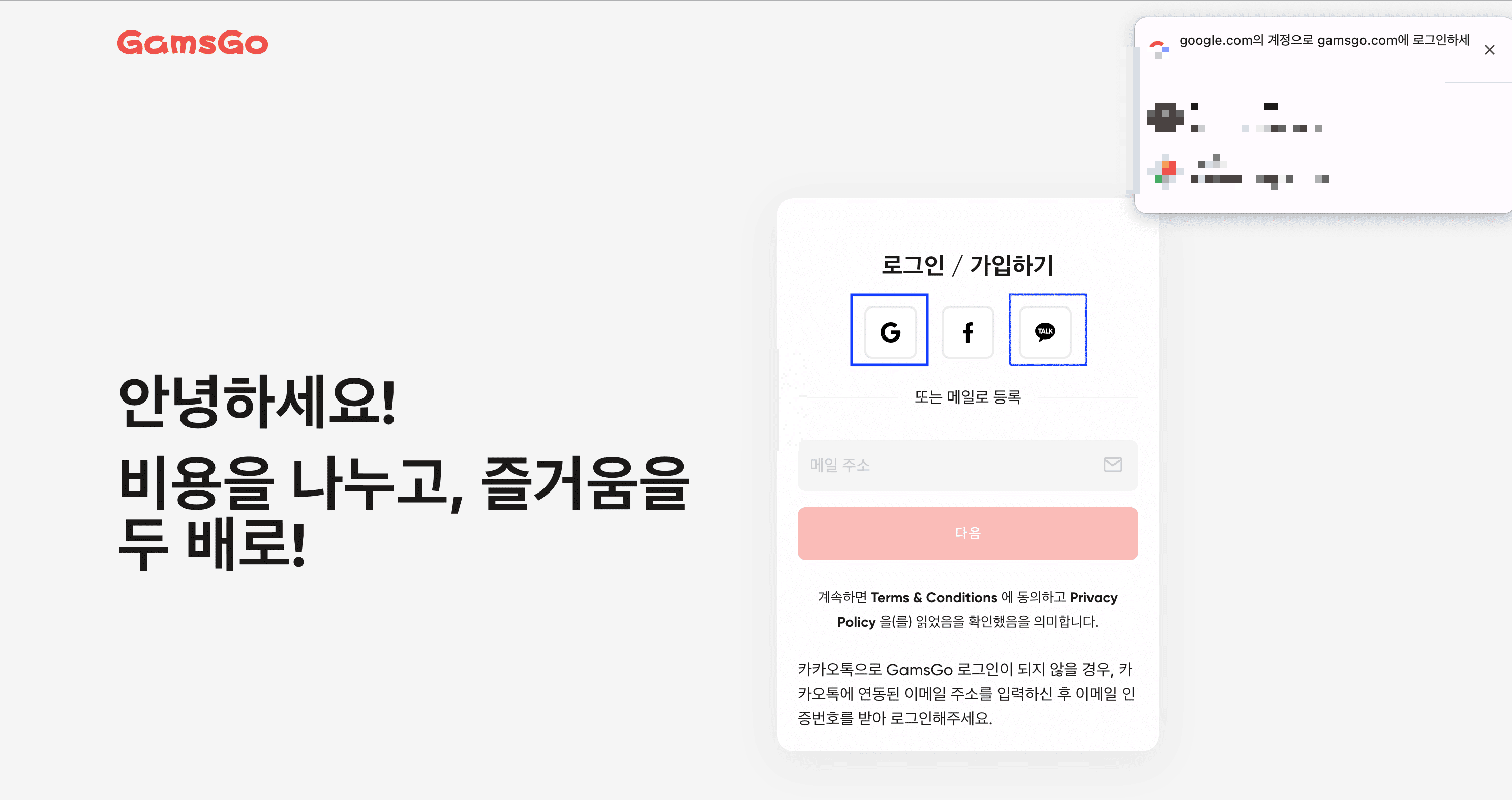 아이디를 만드는 건 너무 쉽습니다. 왜냐면 간편 가입이 되기 때문인데요. 구글이나 카카오톡 계정 없으신 분들은 없을 것이라 생각합니다. 기존 구글 계정을 사용하시거나 카카오톡 계정으로 간편하게 가입하세요.