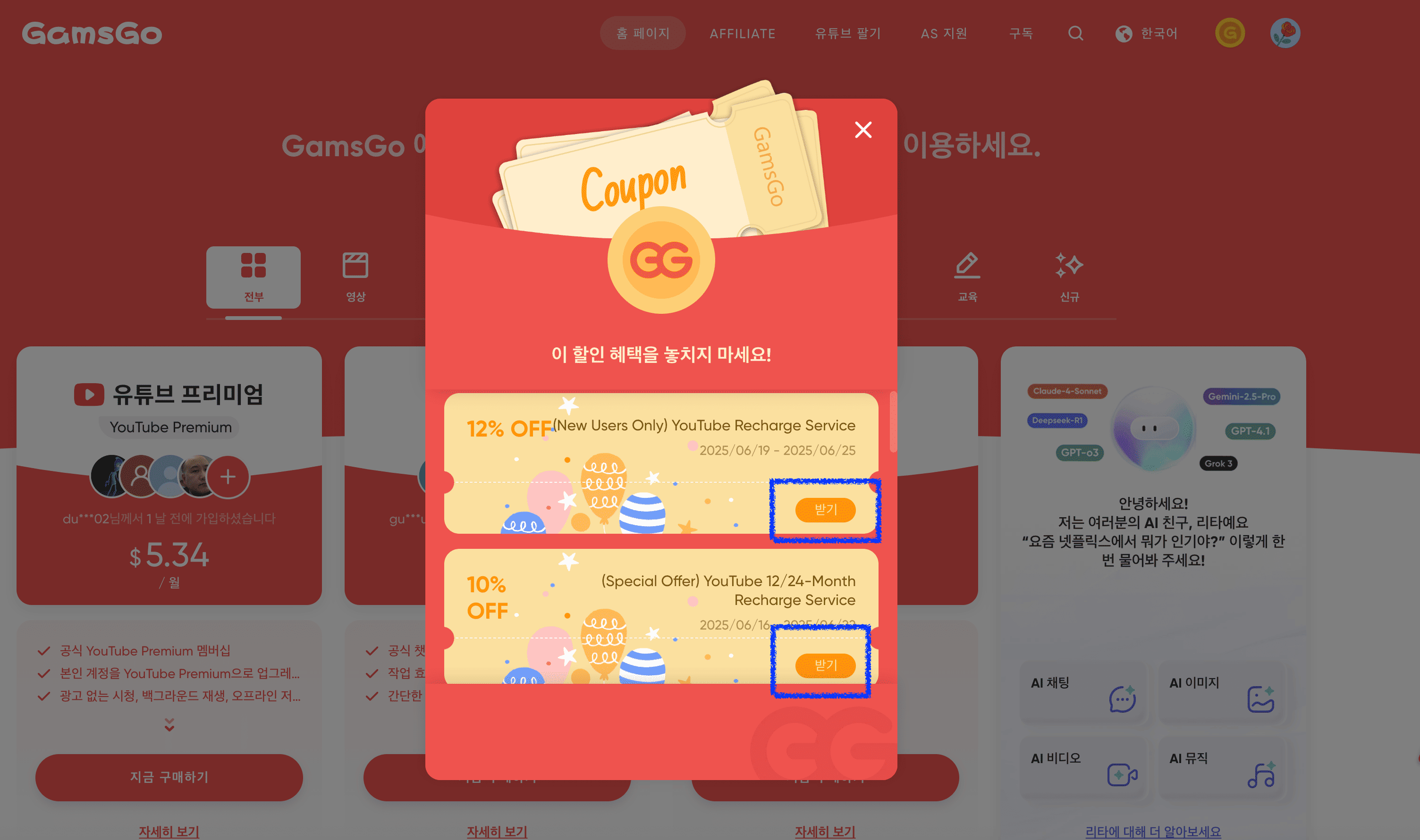 유튜브 프리미엄 구독 이제 돈 걱정 마세요. 겜스고에서 지금 사용하고 있는 계정에 충전식으로 저렴하게 구독을 할 수 있는 혁신적인 서비스가 출시됐습니다. 이제 구독 유목민 시대가 막을 내릴 시간이 되었습니다.