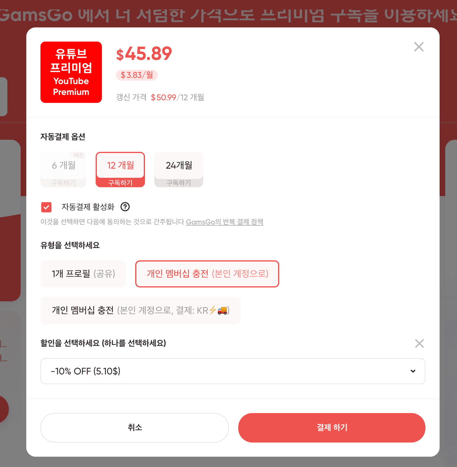 | [후기] 유튜브 프리미엄 싸게 월 5천원! (feat.겜스고 충전 서비스) (1) | 2025.06.29 |