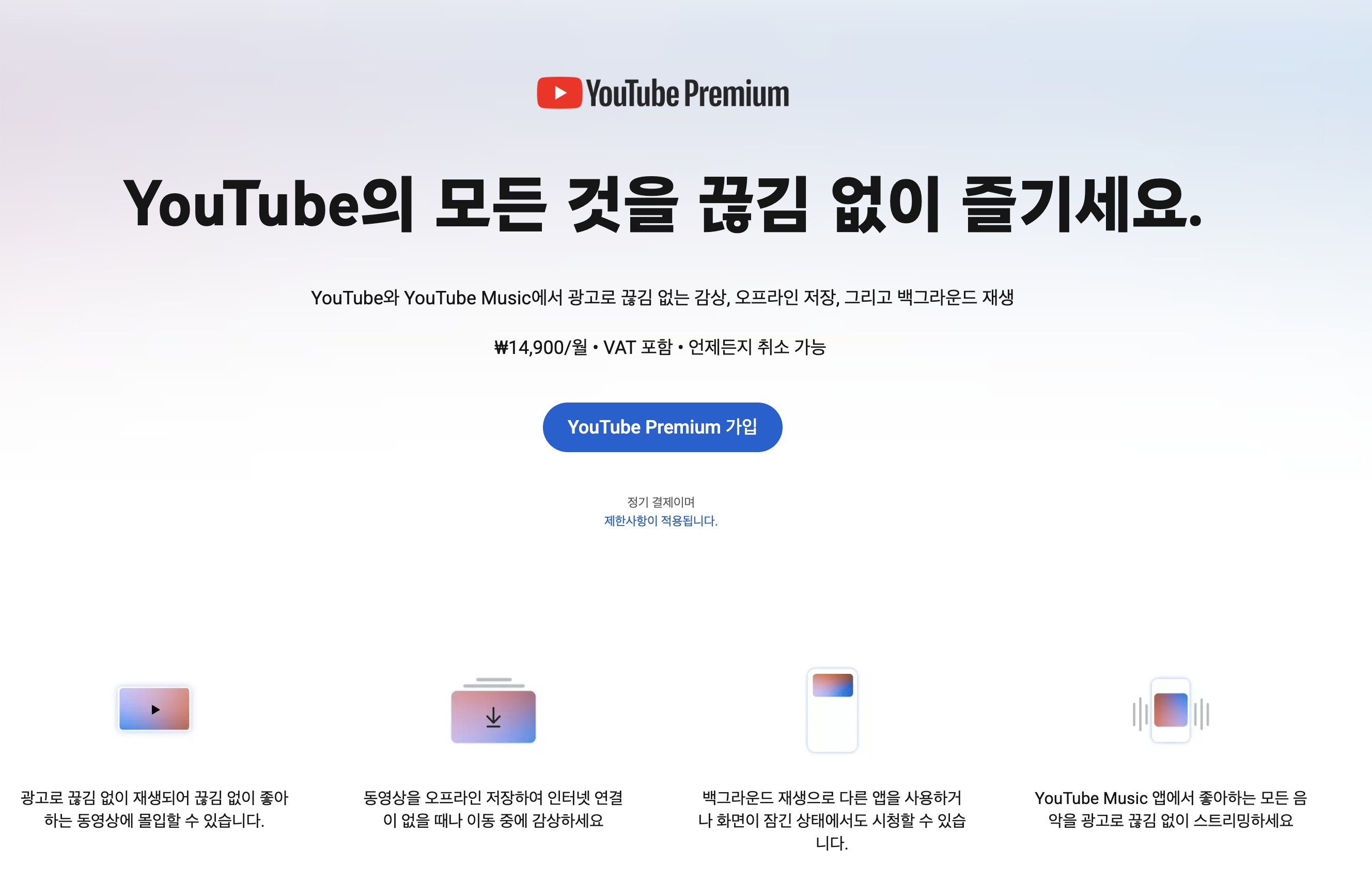비교를 하려면 기준점(정가)을 먼저 잡아야 합니다. 2026년 들어 유튜브 프리미엄 라이트가 국내에 안내되면서 선택지가 더 복잡해졌습니다. 공식 안내 기준으로는 YouTube Premium(월 14,900원) 같은 축이 존재합니다(세부 구성은 제공 방식 및 정책에 따라 달라질 수 있습니다).