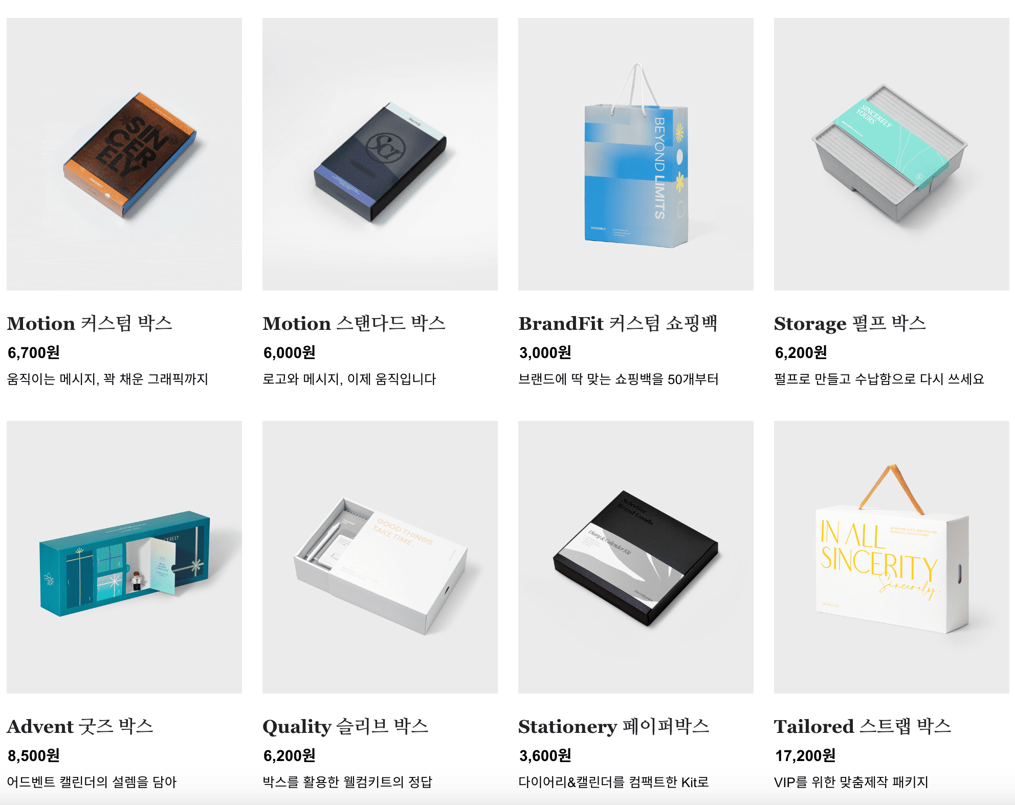 - 다이어리: 슬로건 다이어리(8,800원), 프리미엄 다이어리(12,400원) 등, 기업의 브랜드 메시지를 담을 수 있는 맞춤형 제품.