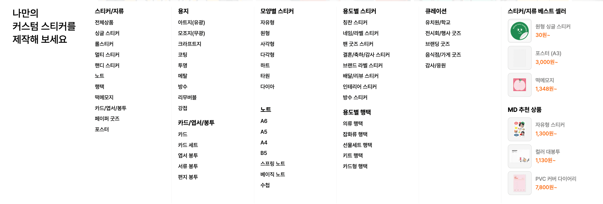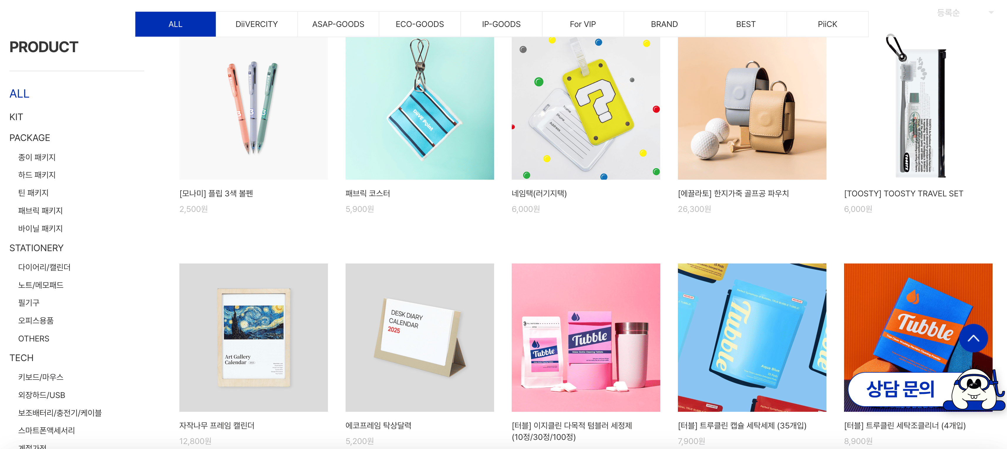 신시어리보다 많은 상품군을 가지고 있습니다. 판촉물 플랫폼보다는 가격이 있는 편이지만, 대량으로 발주 넣을 시 역시나 조금 더 저렴한 가격으로 구매 진행이 가능합니다.