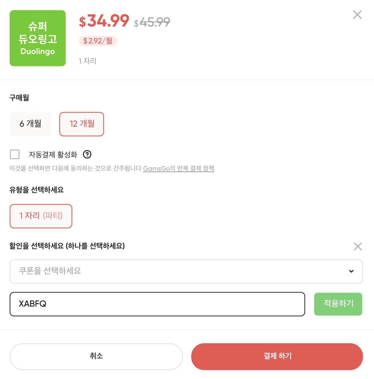 결국 언어 학습의 본질은 꾸준함이고, 겜스고는 그 꾸준함을 ‘합리적인 비용’으로 유지하게 해 줍니다. 이 가격에 Super Duolingo를 정식 계정으로 쓸 수 있다면, 굳이 고민할 이유가 없습니다.