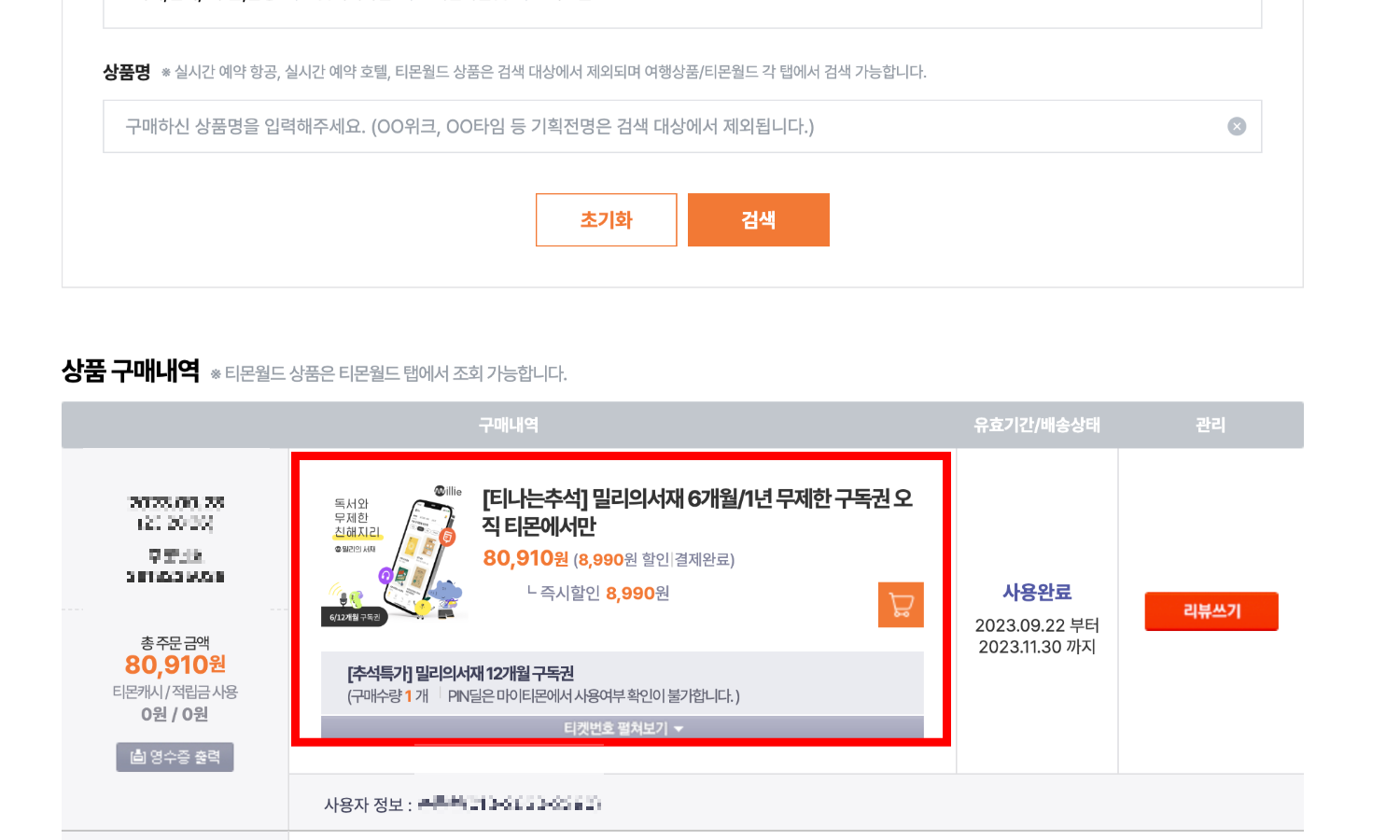 밀리의 서재 구독권 할인받기 : 티켓몬스터 (티몬)