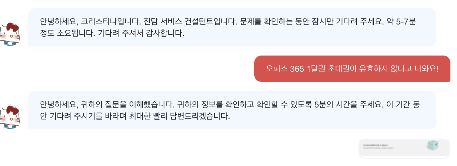 고객센터도 24시간 대응이라 문의하면 바로 답변이 옵니다. 이 정도면 소비자가 의심할 만한 포인트가 거의 사라집니다. 저도 마이크로소프트 365를 받고 나서 약간의 문제가 있었는데
