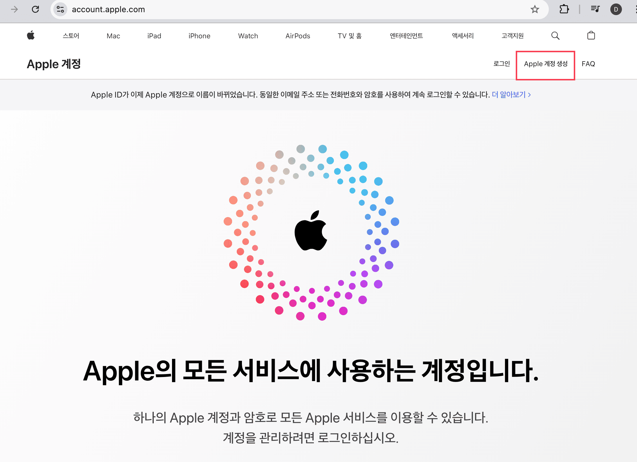아래 이미지처럼 한 단계씩 따라오시면됩니다. 먼저 애플 아이디를 만들어야 되는데요. 애플홈페이지에 들어가셔서 계정 밑에 'Apple 계정 관리'를 클릭합니다. 그러면 가운데 이미지처럼 화면이 나옵니다.