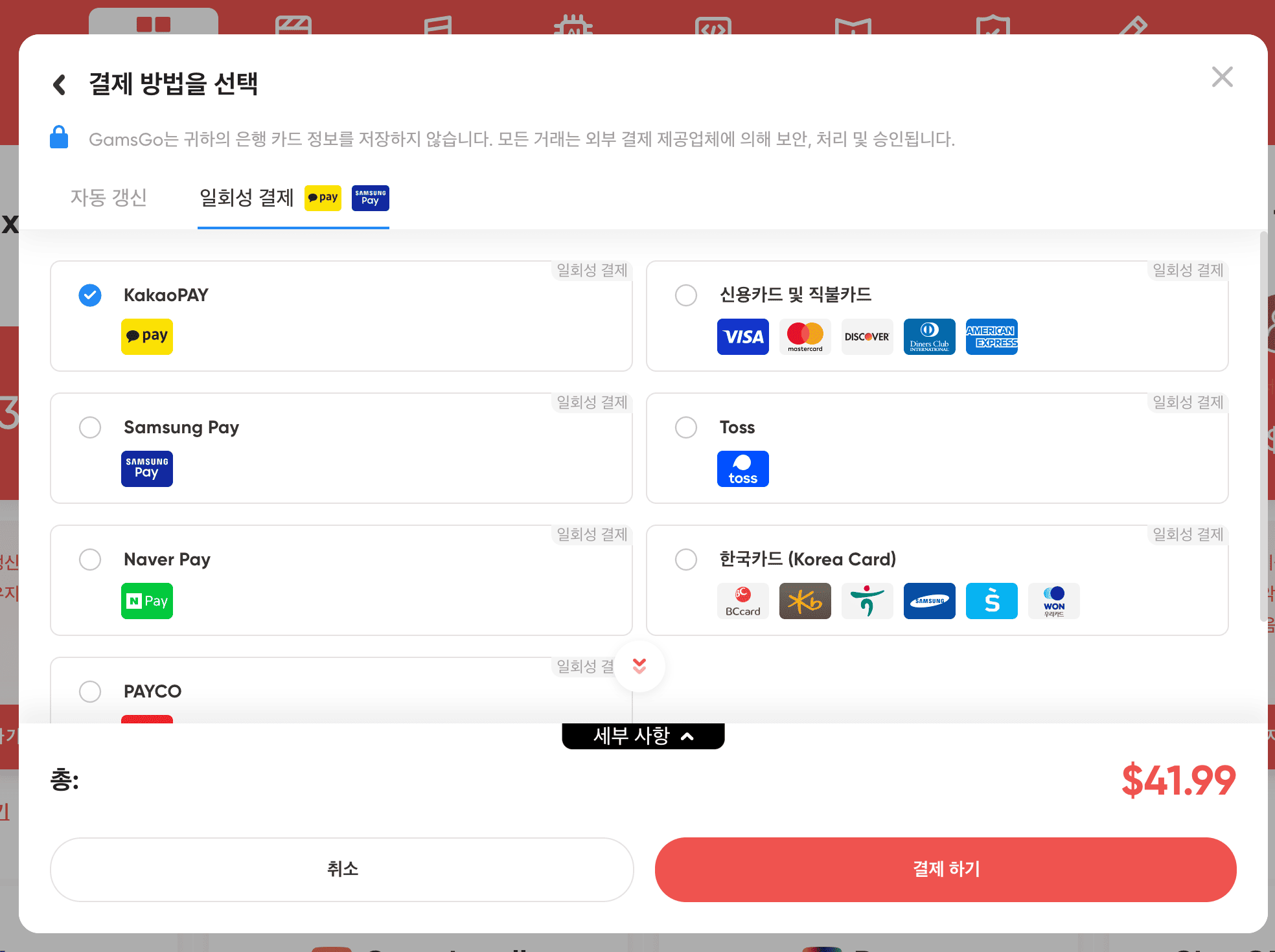 | 겜스고 | 41달러 | 약 5,000 원 |