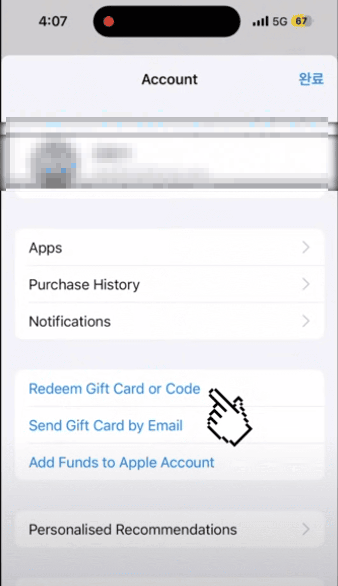 '앱스토어'에 들어가셔서 처음에 가입하셨던 터키 애플 아이디로 로그인을 진행합니다. 로그인을 진행하고 나서는 아래 손가락 표시되어 있는 'Redeem Gift Card or Code'로 들어갑니다. 그 후 복사해 놨던 코드를 기입합니다.