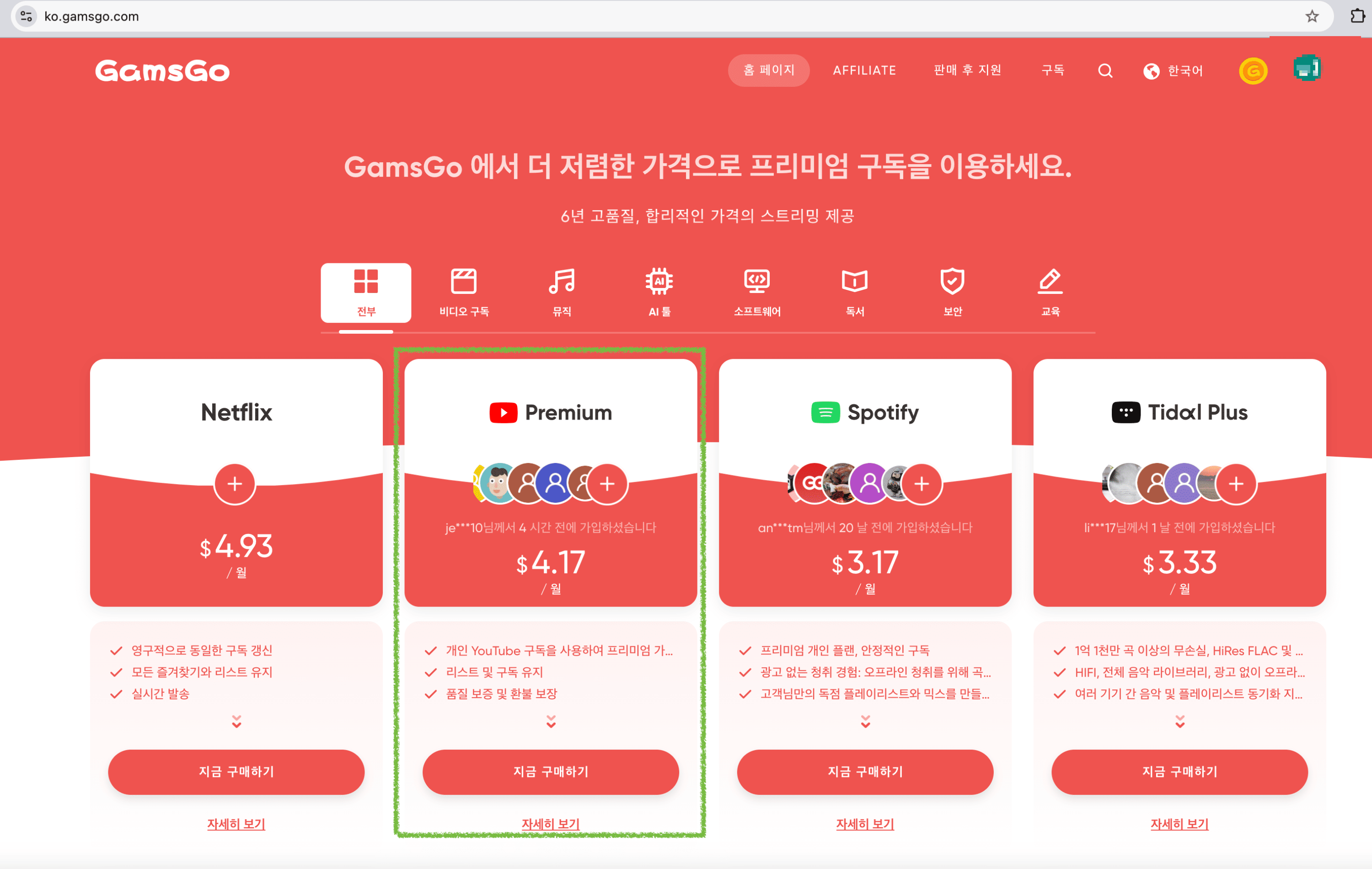 겜스고로 유튜브 프리미엄 정지 걱정 없이 보기 (할인코드)