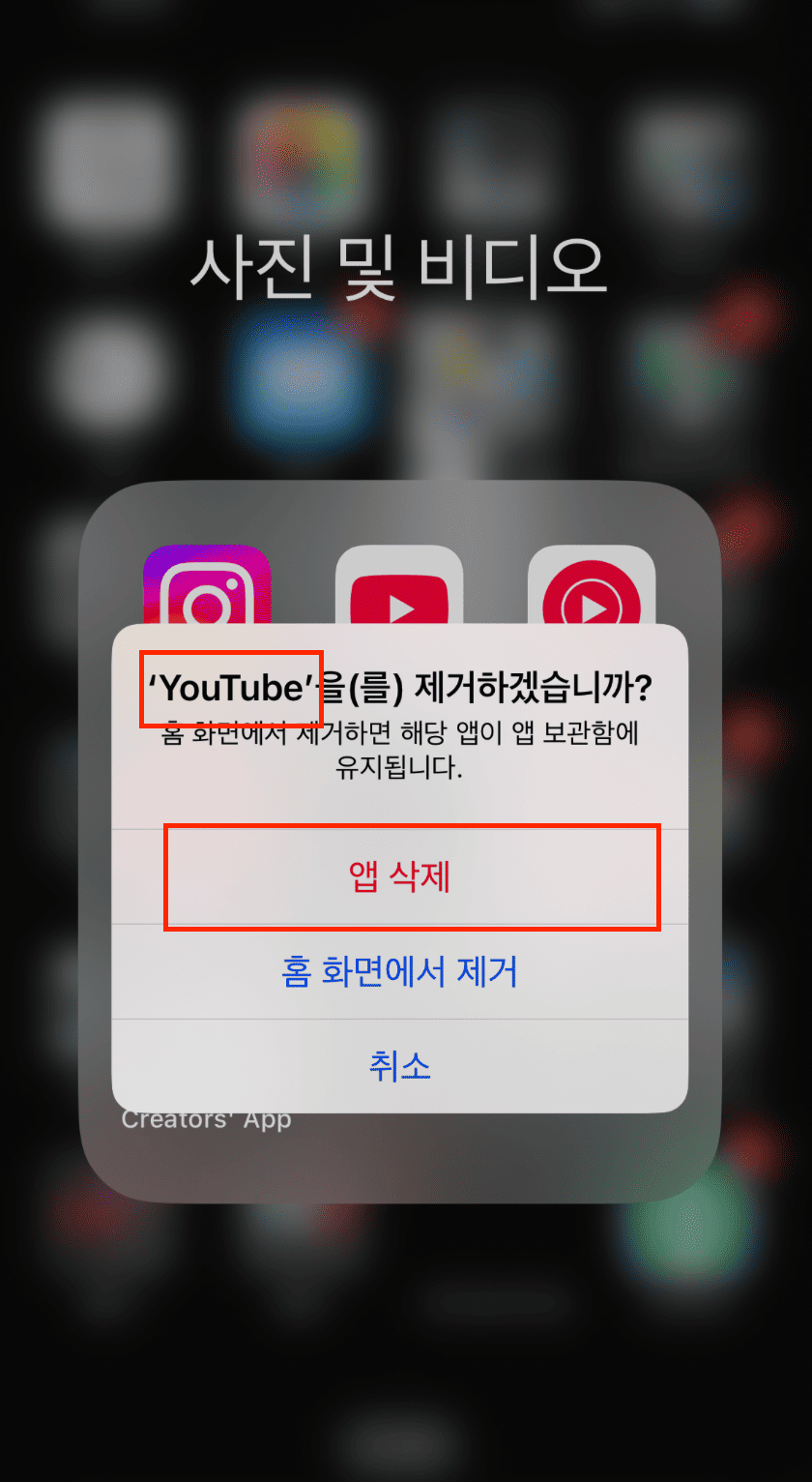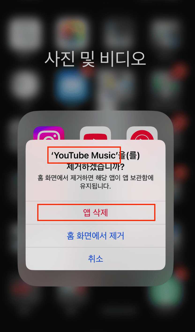 그리고 유튜브와 유튜브 뮤직을 삭제합니다. 삭제 안 하시면 안 됩니다. 삭제를 꼭 하셔야 추후 진행되는 과정에서 문제가 생기지 않습니다.