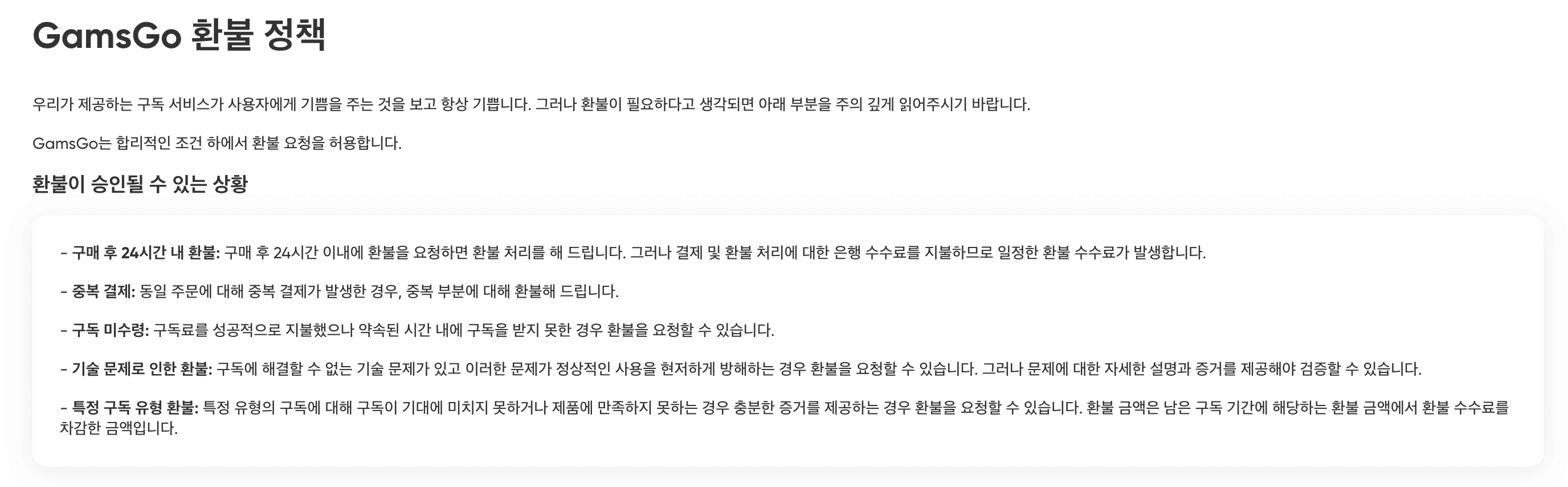 겜스고는 이용 초기 환불 요청이 가능합니다. 다만 환불 조건은 상품별로 상이하니, 결제 전 반드시 확인하시길 권합니다.