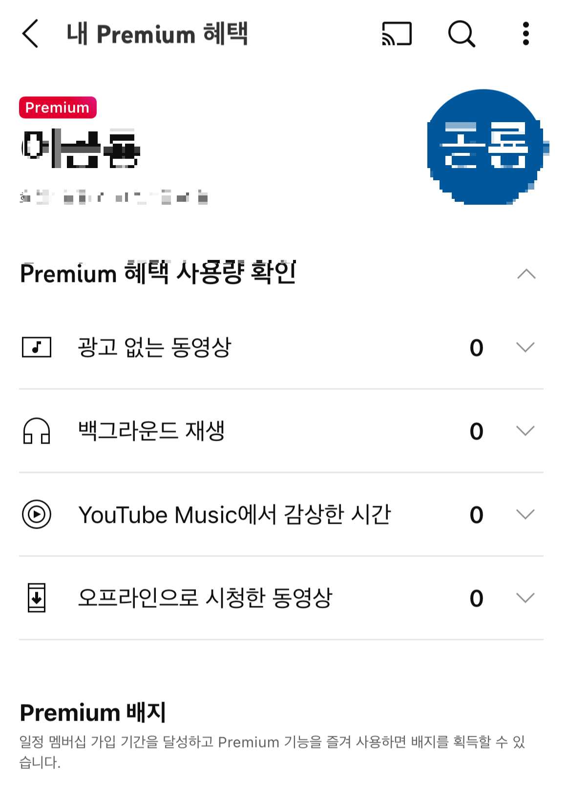 충전이 완료되면 유튜브 앱이나 웹에서 프리미엄이 활성화된 것을 확인하실 수 있습니다. 혹시 앱에서 프리미엄이 안 뜨면, 로그아웃 후 재로그인을 해보시면 대부분 해결됩니다.