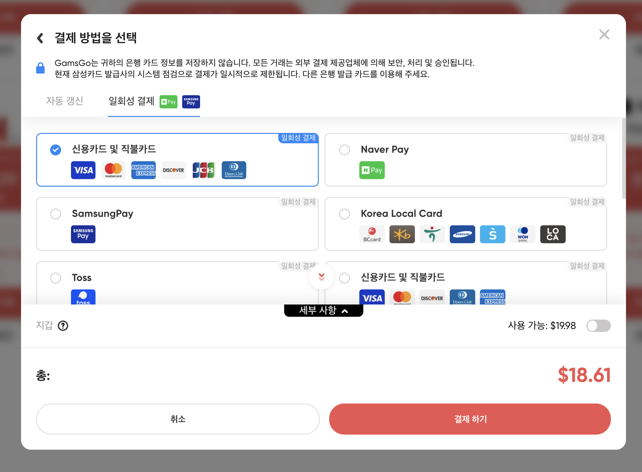 환율 변동: 겜스고가 해외 플랫폼이다 보니, 환율에 따라 실제 결제 금액이 소폭 변동됩니다. 결제 직전 화면에서 최종 금액을 반드시 확인하시길 권합니다.