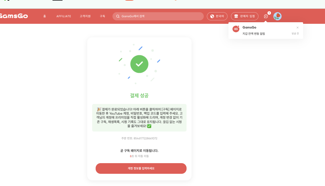 그래도 안 되면? 겜스고 고객센터에 주문번호와 함께 문의하시면 빠르게 처리해 줍니다. 저도 한 번 문의한 적이 있는데, 몇 시간 내로 해결되었습니다.