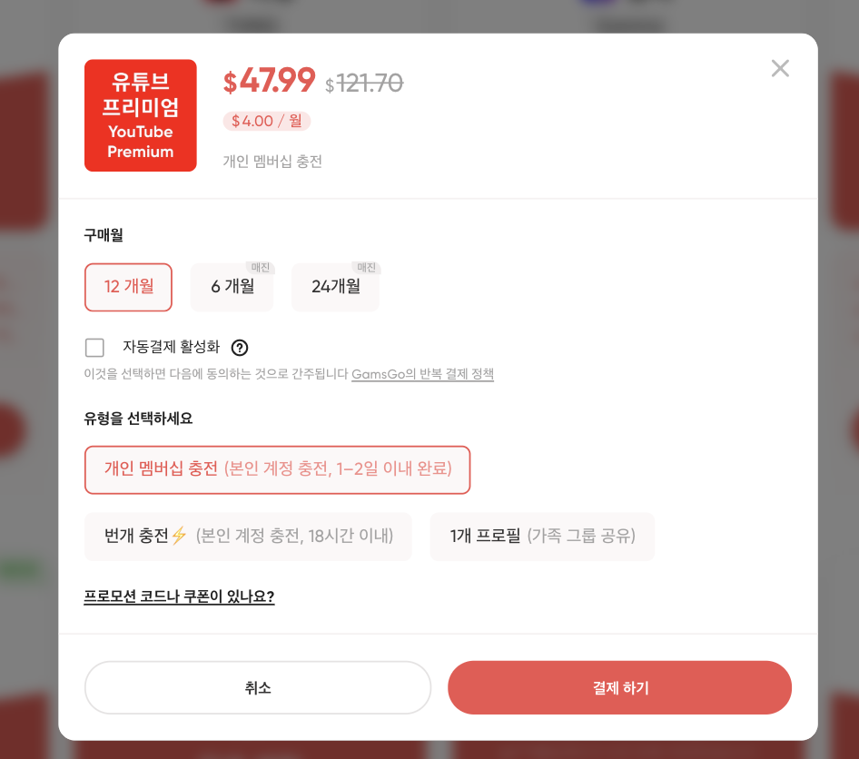 겜스고 유튜브 프리미엄 구독 방법 — 따라하기만 하세요