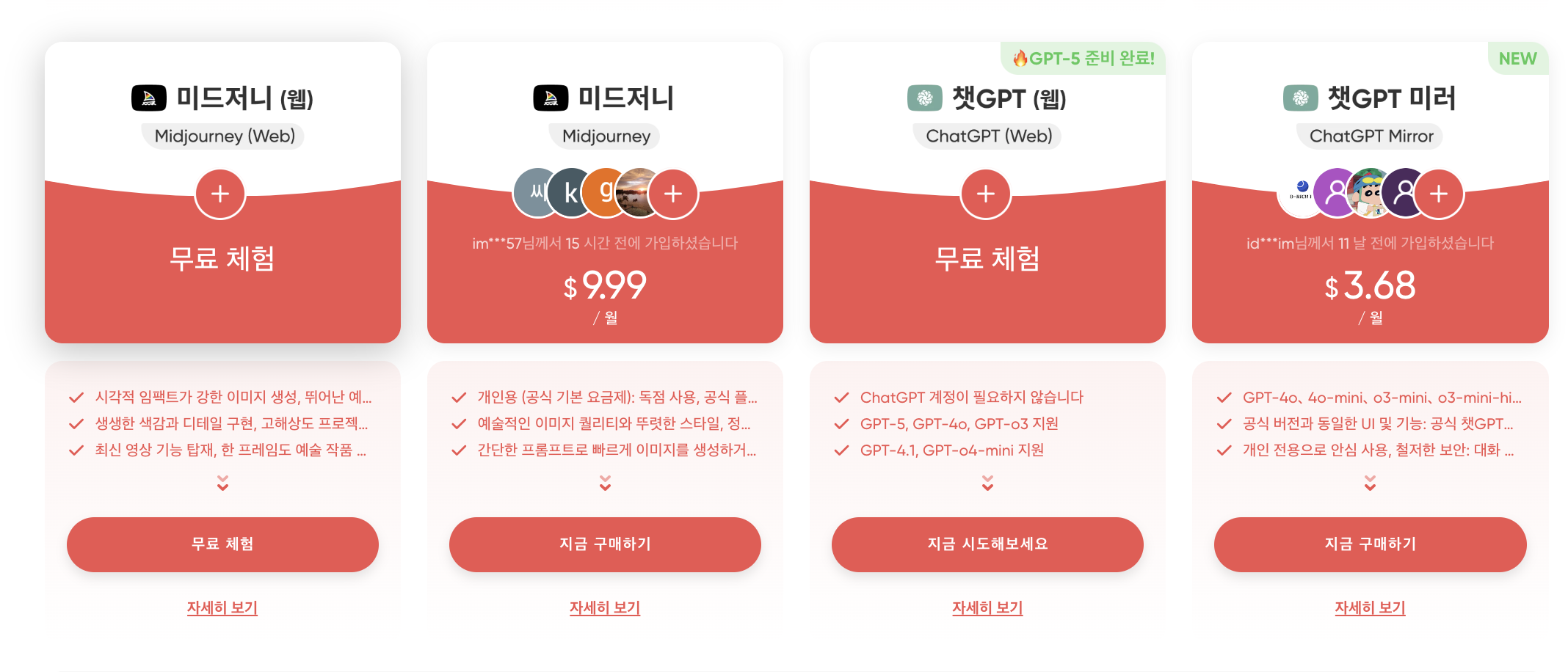 | AI 서비스 | ChatGPT, 클로드 AI, 미드저니, 퍼플렉시티, 그록 |
