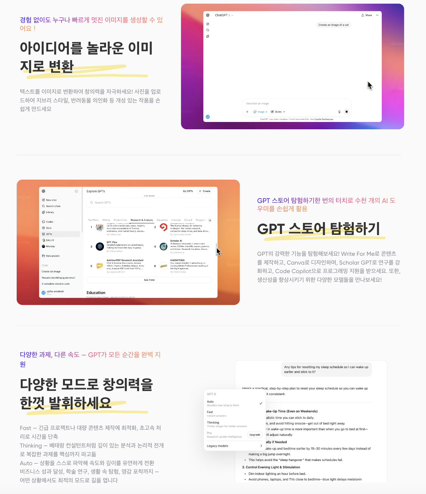 | 혜택 | GPT-5 사용, 빠른 응답, 우선 접속 | 동일 | 동일 |