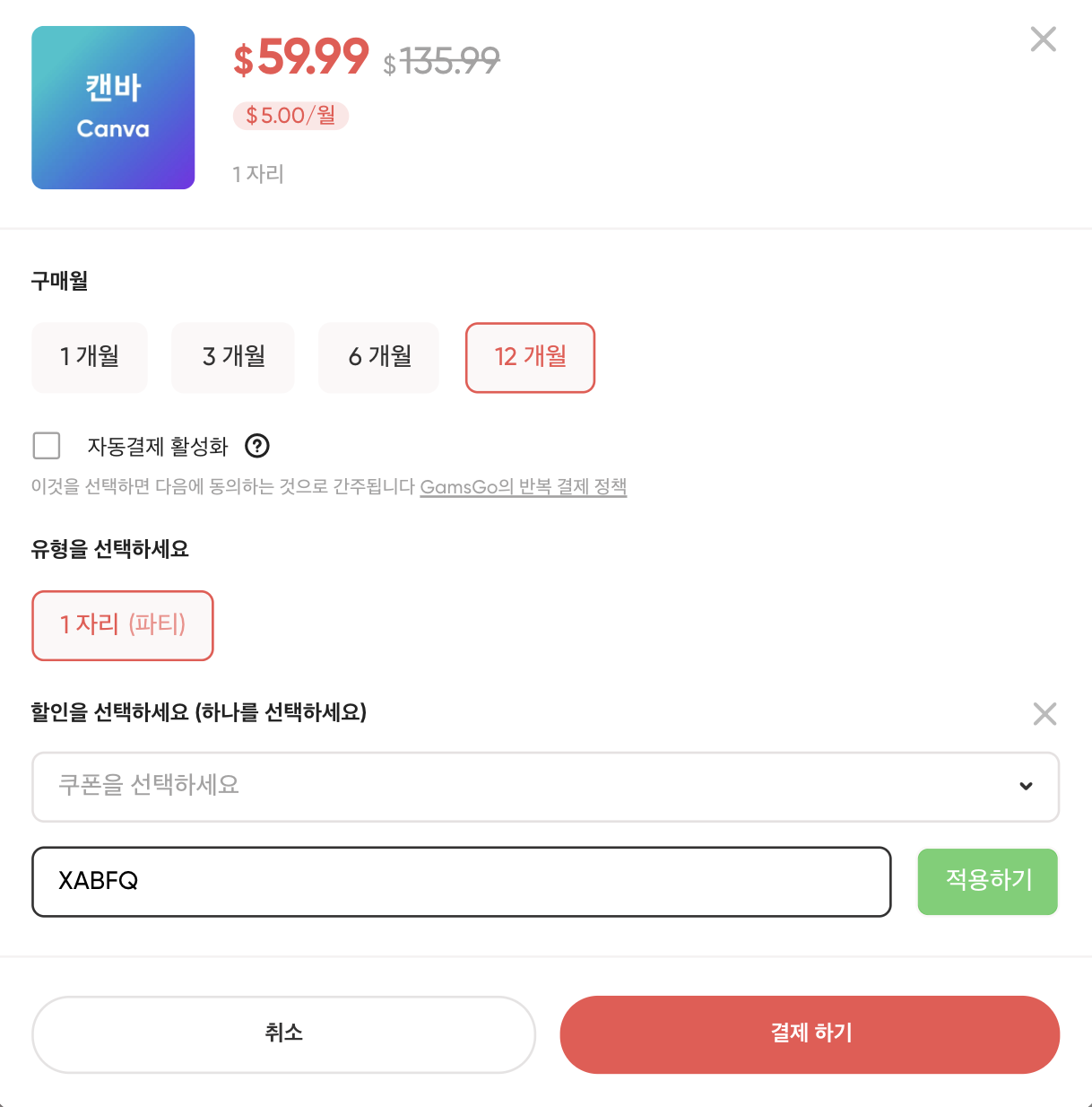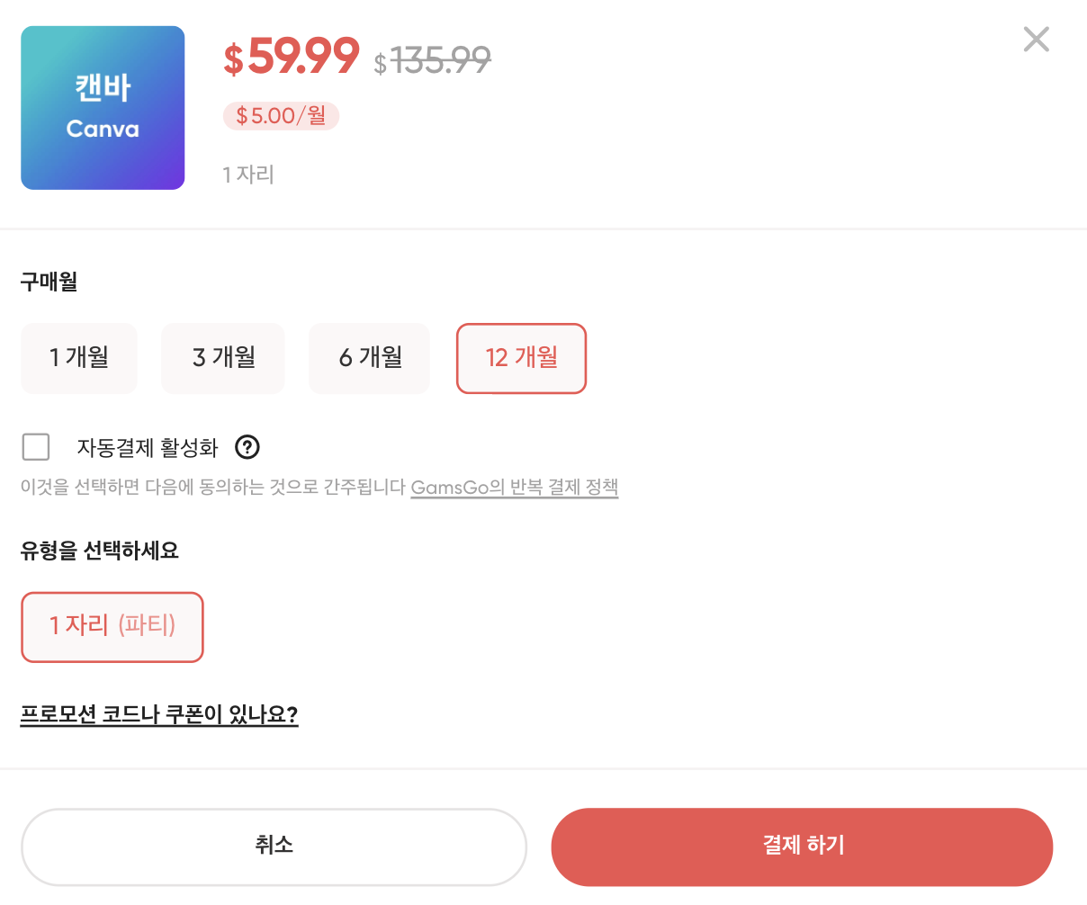 [꿀팁] 캔바 저렴하게 구독하기 (feat. 겜스고 할인코드)