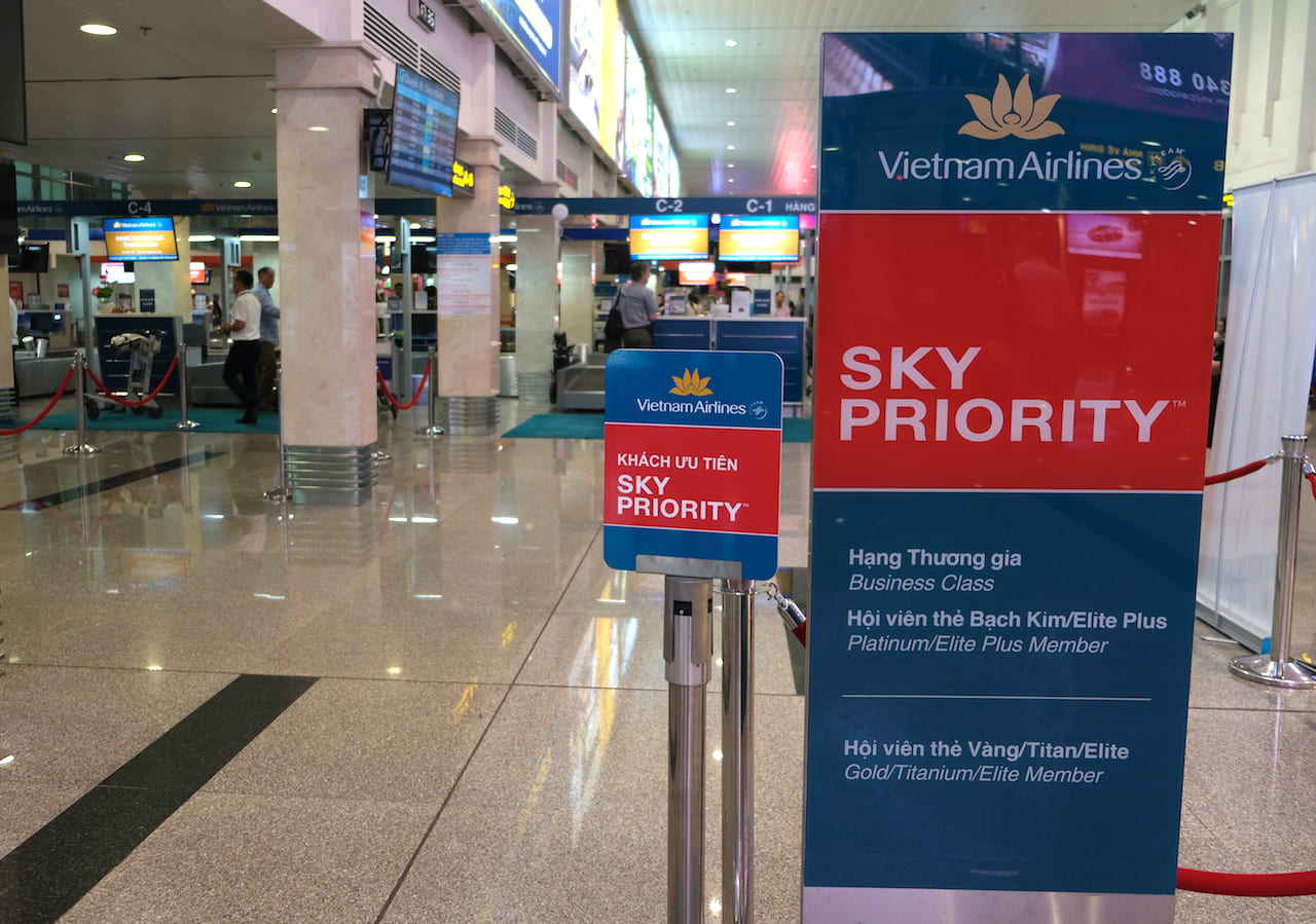 해외 공항에서 체크인 시에 스카이 프라이오리티 전용 카운터를 이용할 수 있습니다. 해외 공항은 정말 줄이 너무 길어서, 말도 안 되게 체크인 시간이 걸립니다.