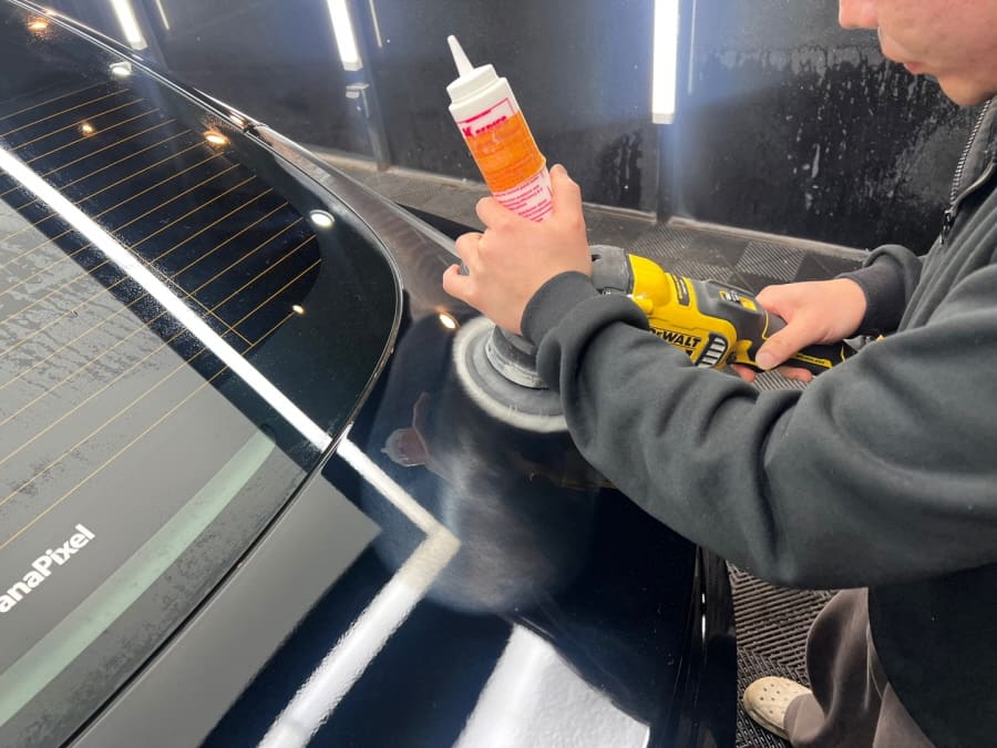 이후 그래핀 코팅제를 차 전체에 고르게 펴 발라 줍니다. 특히 굴곡이 많거나 범퍼·사이드 미러처럼 각이 진 부분도 놓치지 않도록 꼼꼼히 발라주더군요. 도포 후에는 규정된 건조 시간을 충분히 두어, 코팅이 차 표면에 제대로 밀착될 수 있도록 합니다.