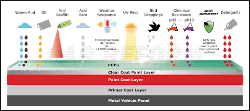 이러한 특성 덕분에 차량 표면에 코팅을 했을 때 얇지만 견고한 보호막이 형성되며, 차량 도장면을 오랫동안 광택 있고 깔끔하게 유지해주는 효과가 있습니다.