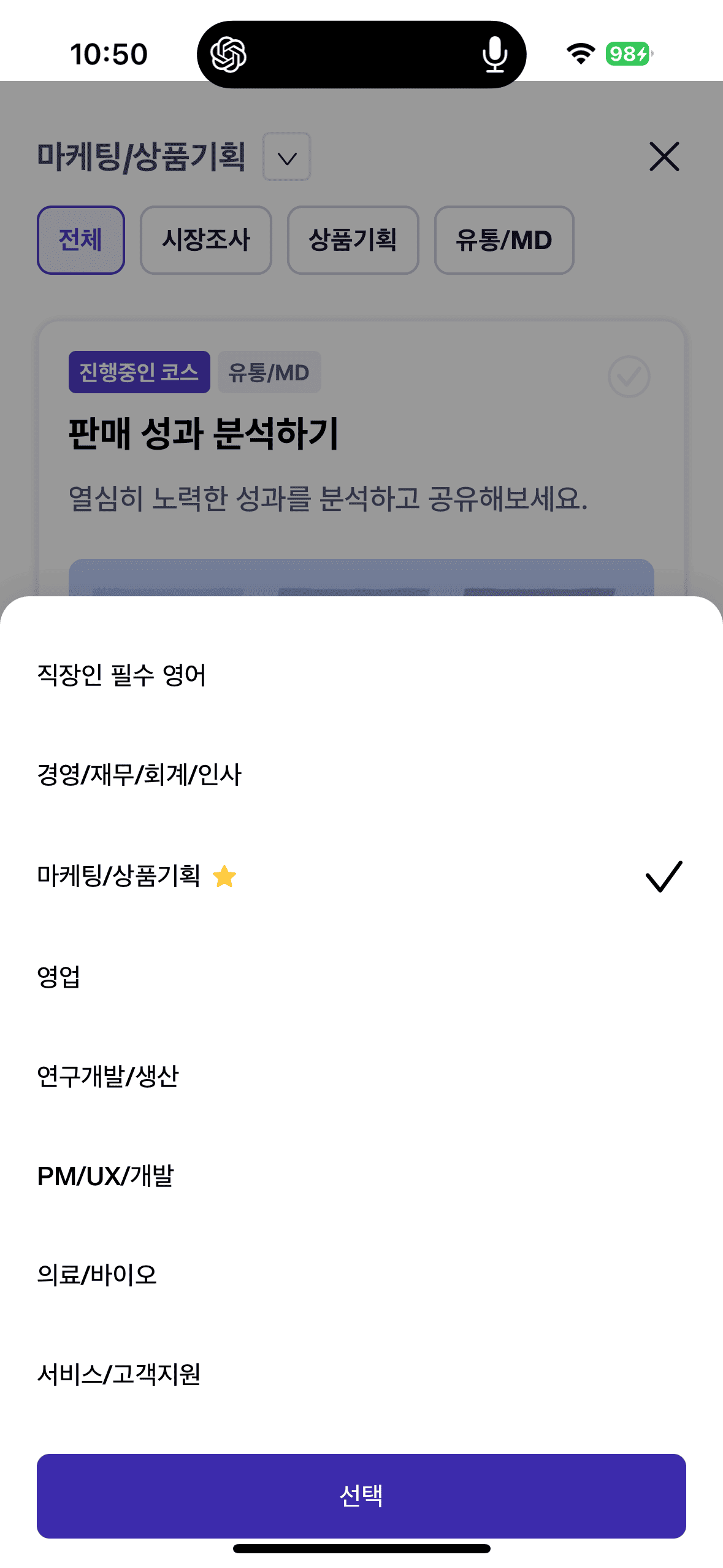 - 직무, 분야별 단계적 학습: 마케팅/경영 직무로 선택 후 공부 진행 시, 대부분의 비즈니스 언어 습득 가능