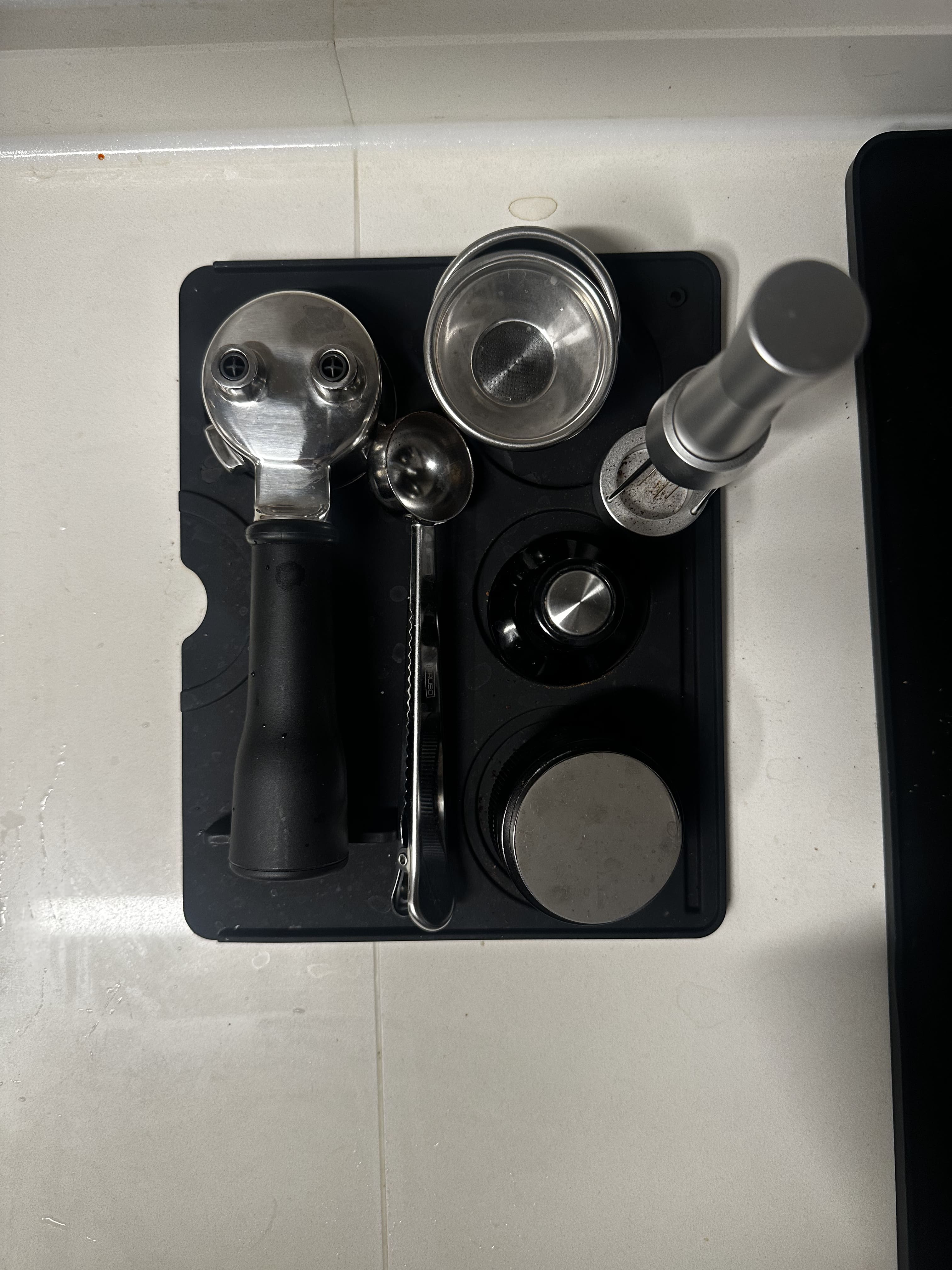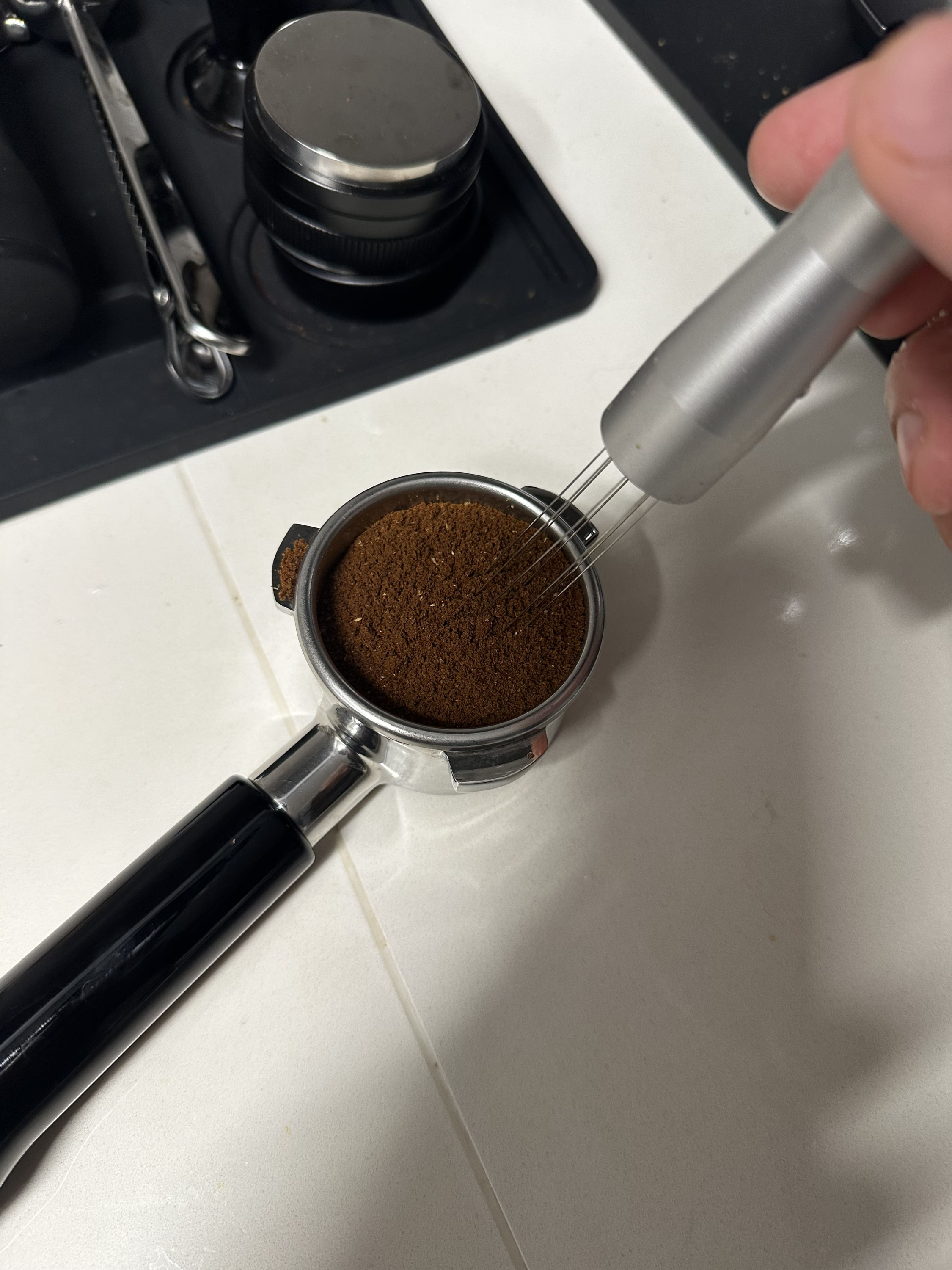 원두를 갈고, 도징하고, 탬핑하고, 추출하고, 스팀하고, 바로 닦고 정리합니다. 말은 길지만 손에 붙으면 10분 내외로 끝납니다. 생각보다 되게 그럴싸한 동작들이 섞여있습니다. 카페에서 어깨너머로 보던 것들이죠.