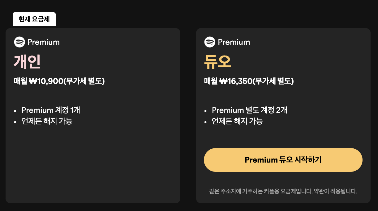 스포티파이 프리미엄 요금제 구조 (한국 기준)