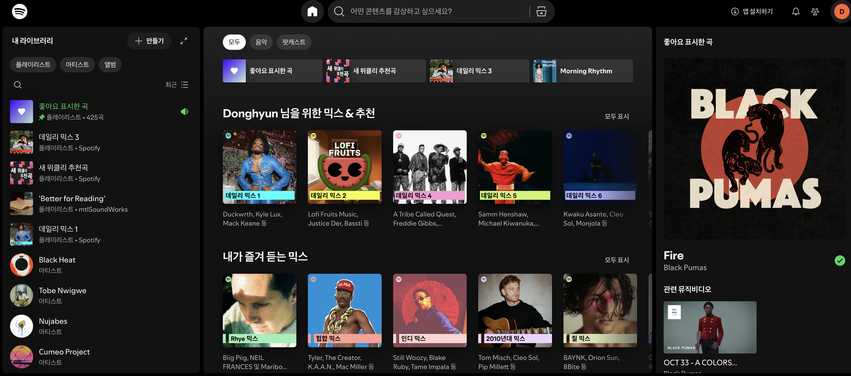 저는 스포티파이를 쓰면서 “내가 이런 장르도 좋아했구나” 하는 순간을 많이 경험했습니다. 특히 Discover Weekly와 Daily Mix 같은 플레이리스트는 제가 굳이 검색하지 않아도 새로운 음악을 찾아주기 때문에, 음악 세계가 넓어지는 기분을 주었습니다.