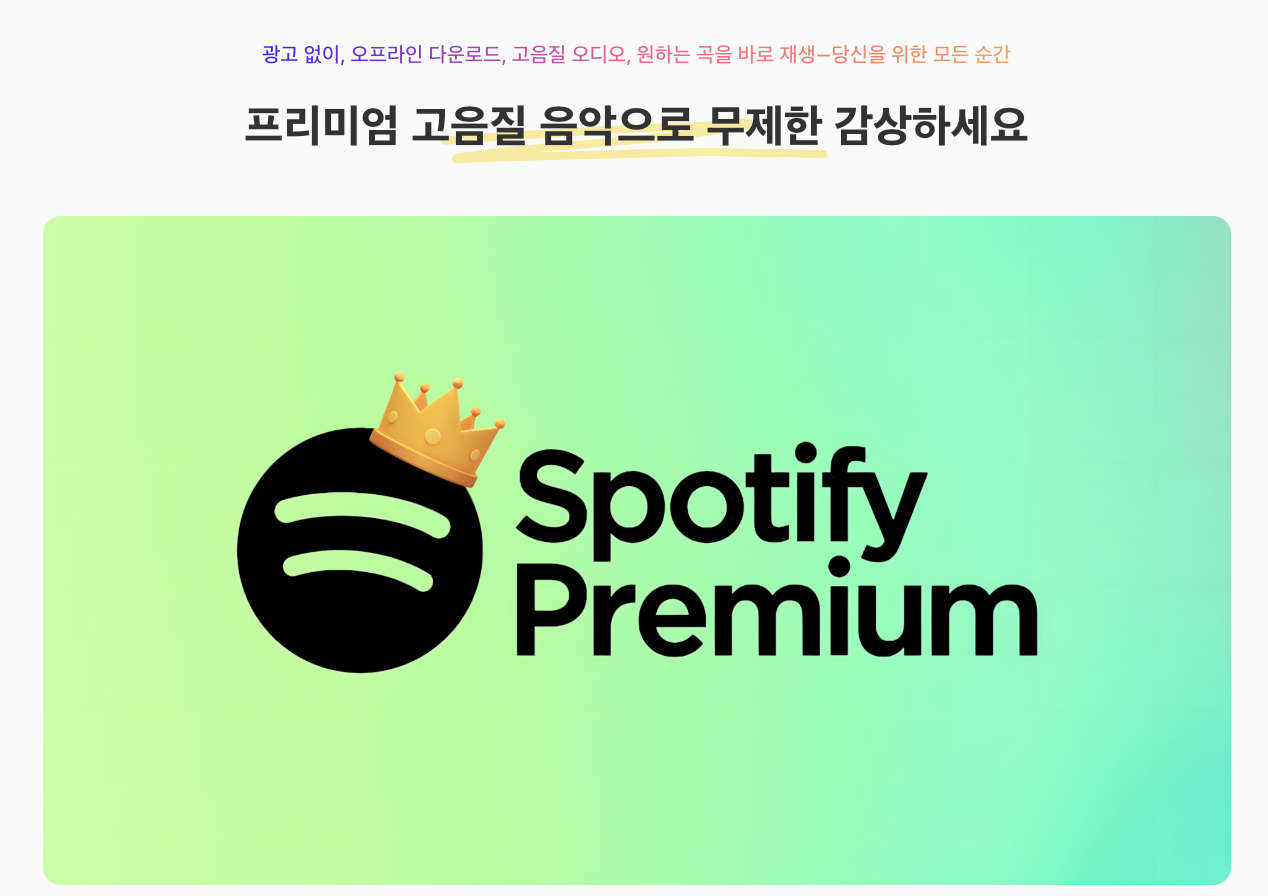 | 개인 플랜 | ₩11,990 | 광고 없음, 무제한 스트리밍, 오프라인 재생 |