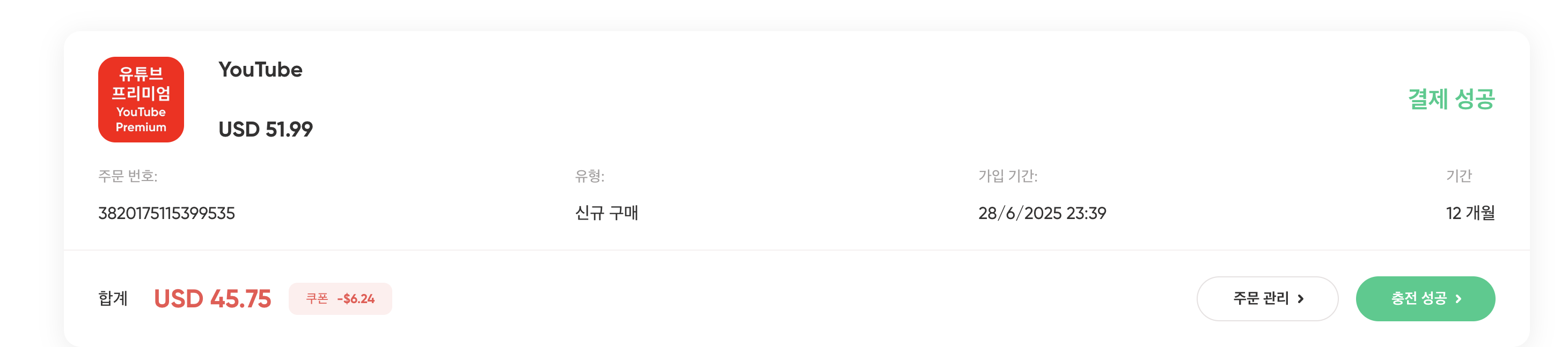 | [후기] 유튜브 프리미엄 싸게 월 5천원! (feat.겜스고 충전 서비스) (1) | 2025.06.29 |