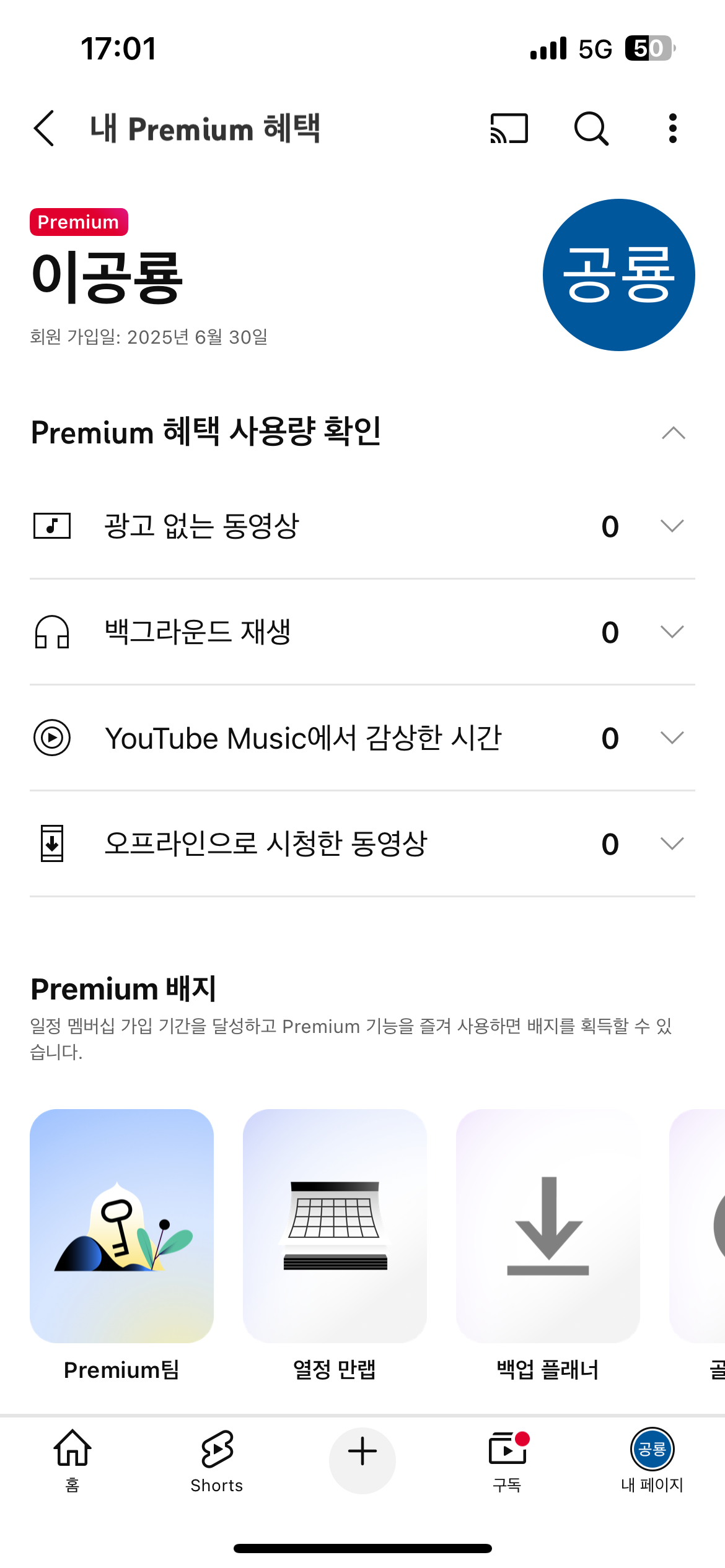 2~3일 이내 완료됩니다. 유튜브 앱 재실행 후 프리미엄 배지가 표시되면 끝입니다.