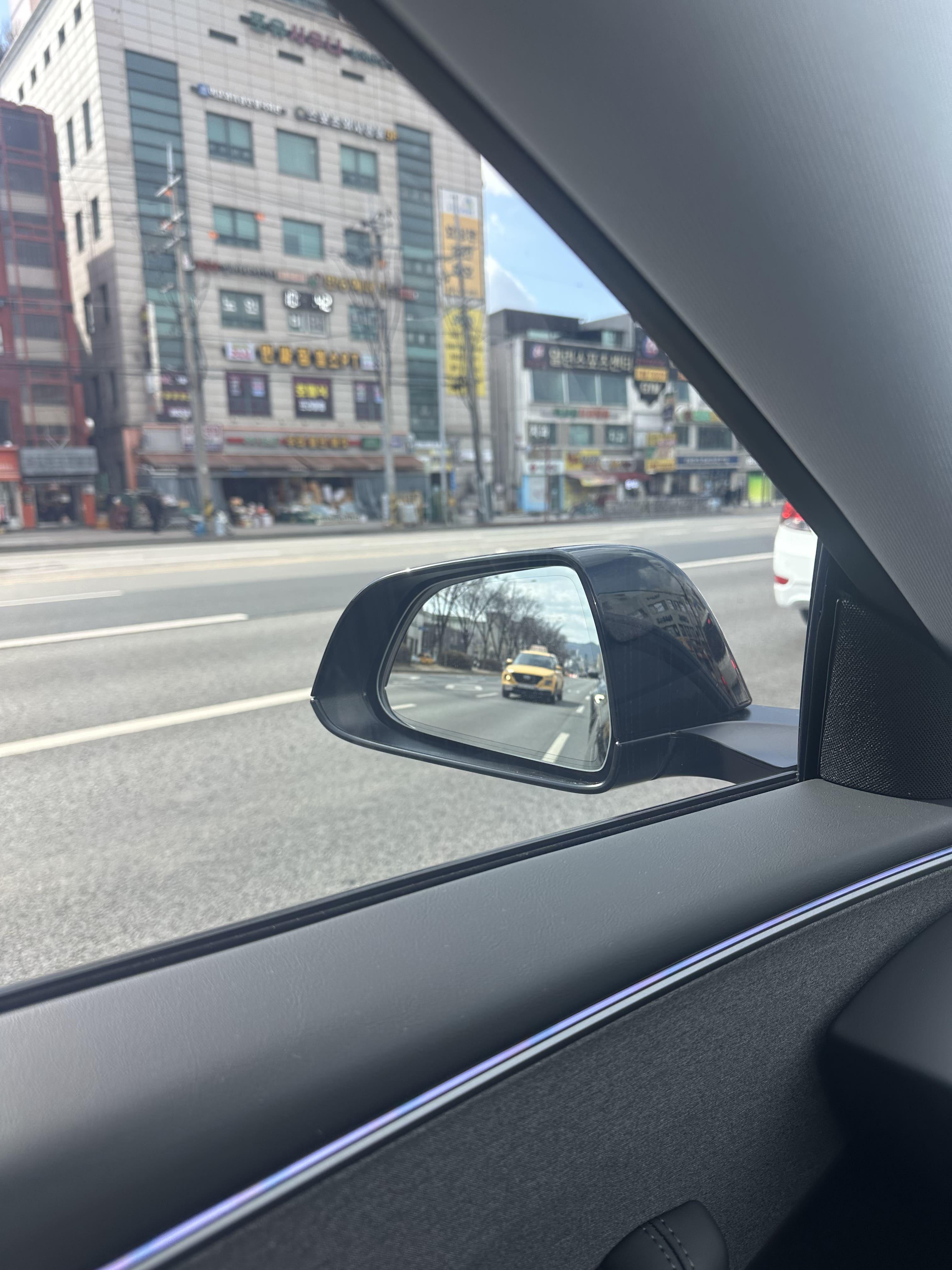 보시면 아시겠지만, 룸미러와 사이드는 어두운 색이 짙어서 불빛과 형태로 알아봐야 하는 게 컸습니다. 물론 이건 정말 개인의 영역이라 제 기준입니다. 그리고 테슬라 룸미러가 약간 작기도 합니다. 잘 안보일 때는 그냥 후방 카메라를 켜고 있습니다.