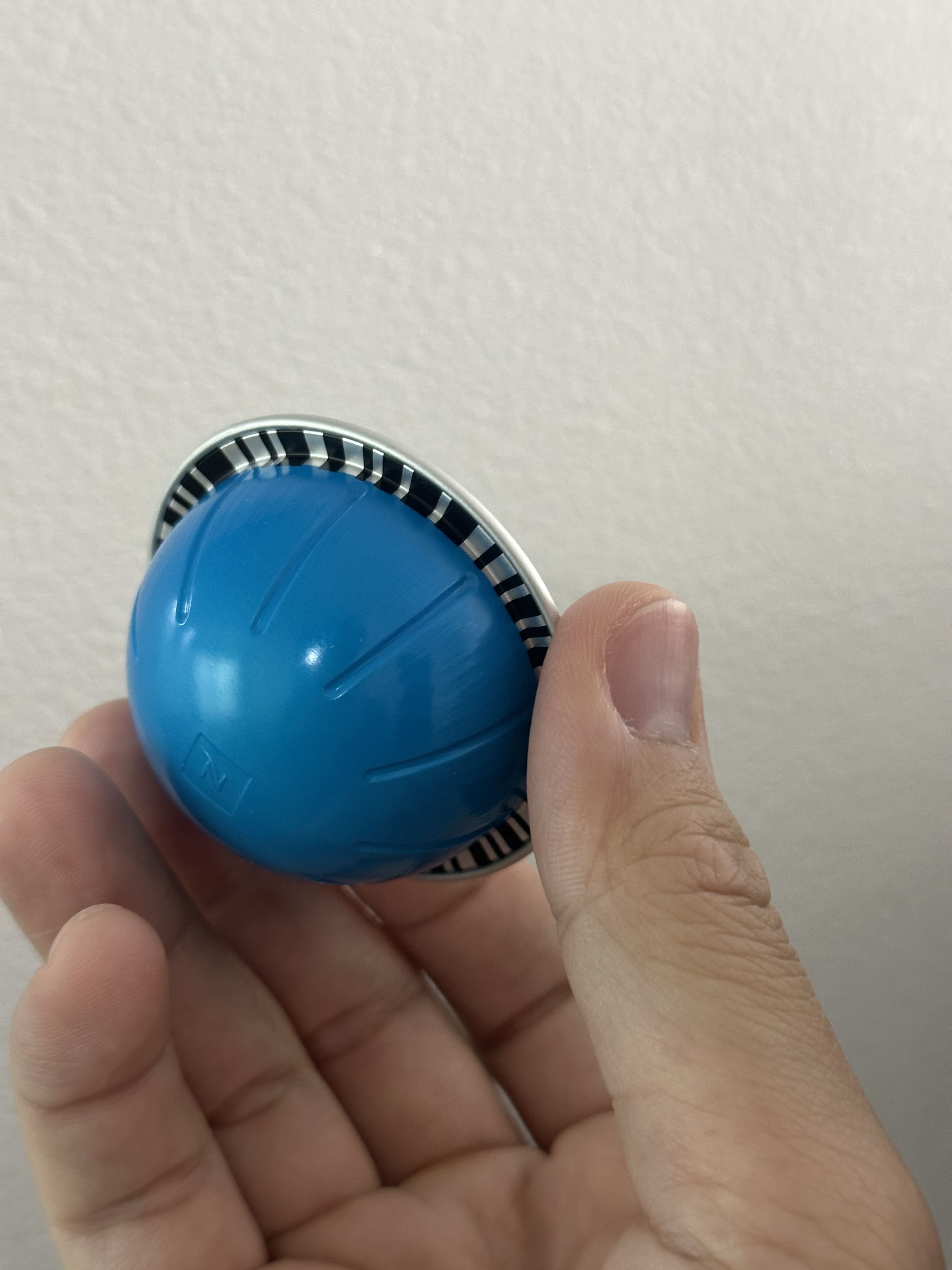 조금 신기했던건, 다른 150ml의 버츄오 캡슐 크기보다 작습니다. 용량으로만 봐서는 40ml에 가까운데, 아마 고농축의 원두를 압축시킨 것이 아닐까 싶습니다.