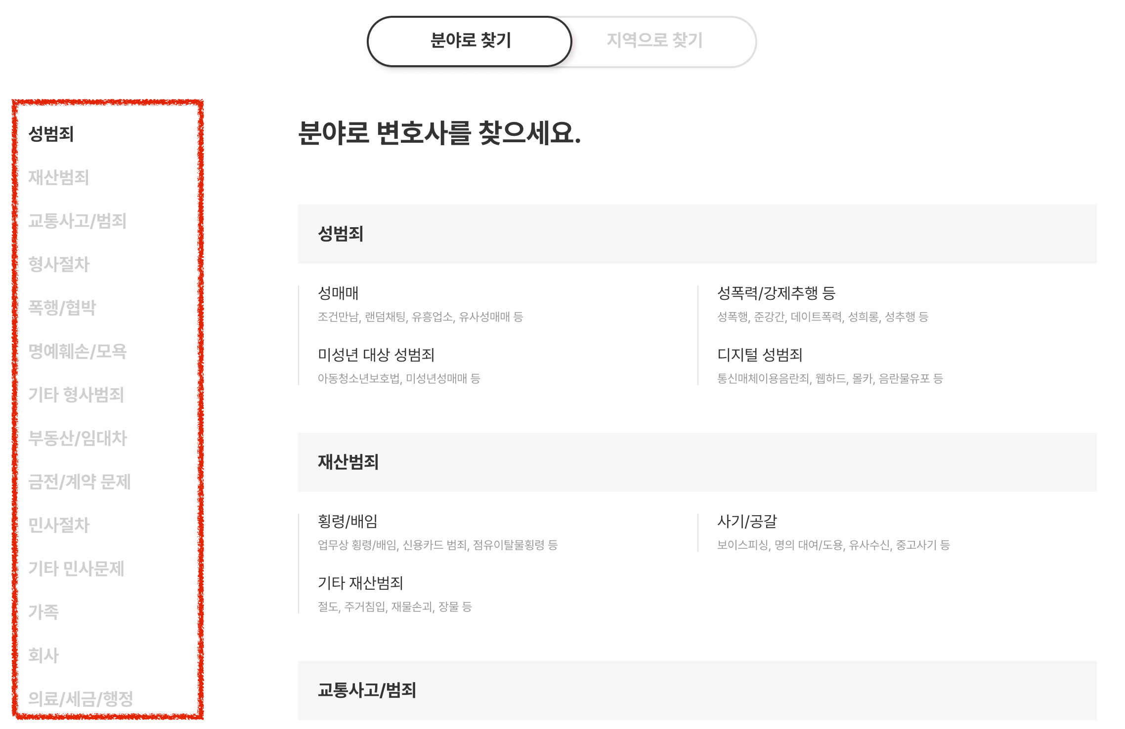 - 변호사 선정이 어려울 때도 분야별 전문 변호사를 쉽게 찾을 수 있음