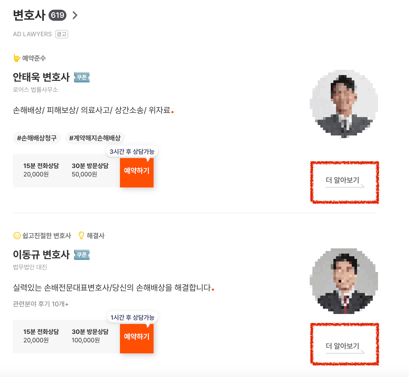 인터넷 검색 중 로톡을 발견하여 앱에서 간단하게 상담 예약을 했고, 15분 전화 상담을 신청했습니다. 처음 변호사 상담 이후 추가로 3건의 변호사 상담을 받았습니다.