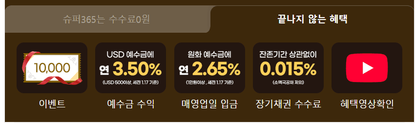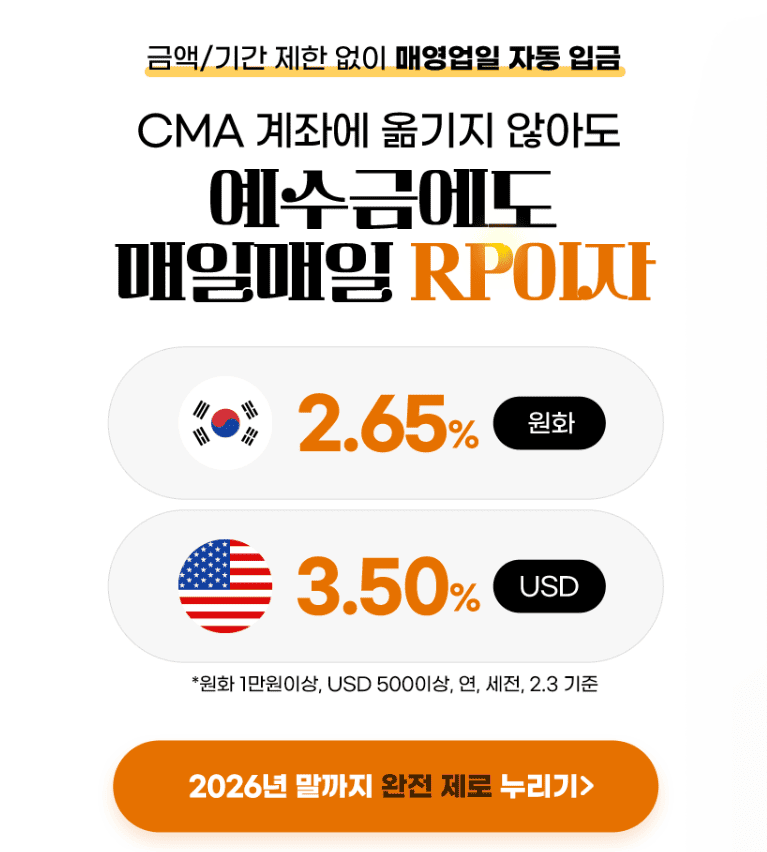 - (2026년 말까지) 예수금 자동 RP 투자로 매일 이자 지급