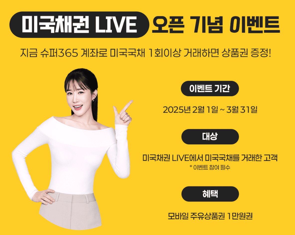 메리츠 슈퍼 365는 대부분 항상 이벤트를 진행하고 있습니다. 현재는 채권 구매 이벤트를 진행하고 있는데요. 미국 국채 1회 이상 거래 시 모바일 주유 상품권 1만원권 증정하고 있습니다. 사실 정말 좋은 이벤트이죠.