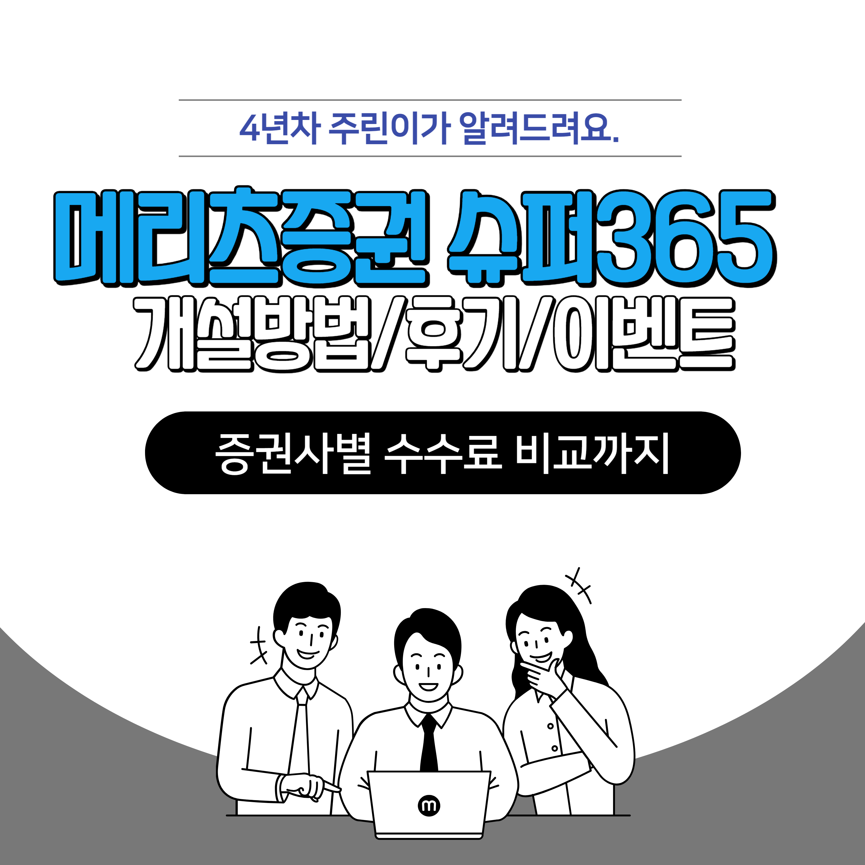 아마 대부분의 해외주식 투자자들은 들어봤을 법 한 메리츠 증권 '슈퍼365' 계좌입니다. 저도 수수료 메리트와 이벤트가 너무 좋아서, 일단 계좌만 개설해놓긴 했습니다. 오늘은 계좌개설 방법과 후기 그리고 타 증권사와의 수수료 비교 글을 작성해볼게요!