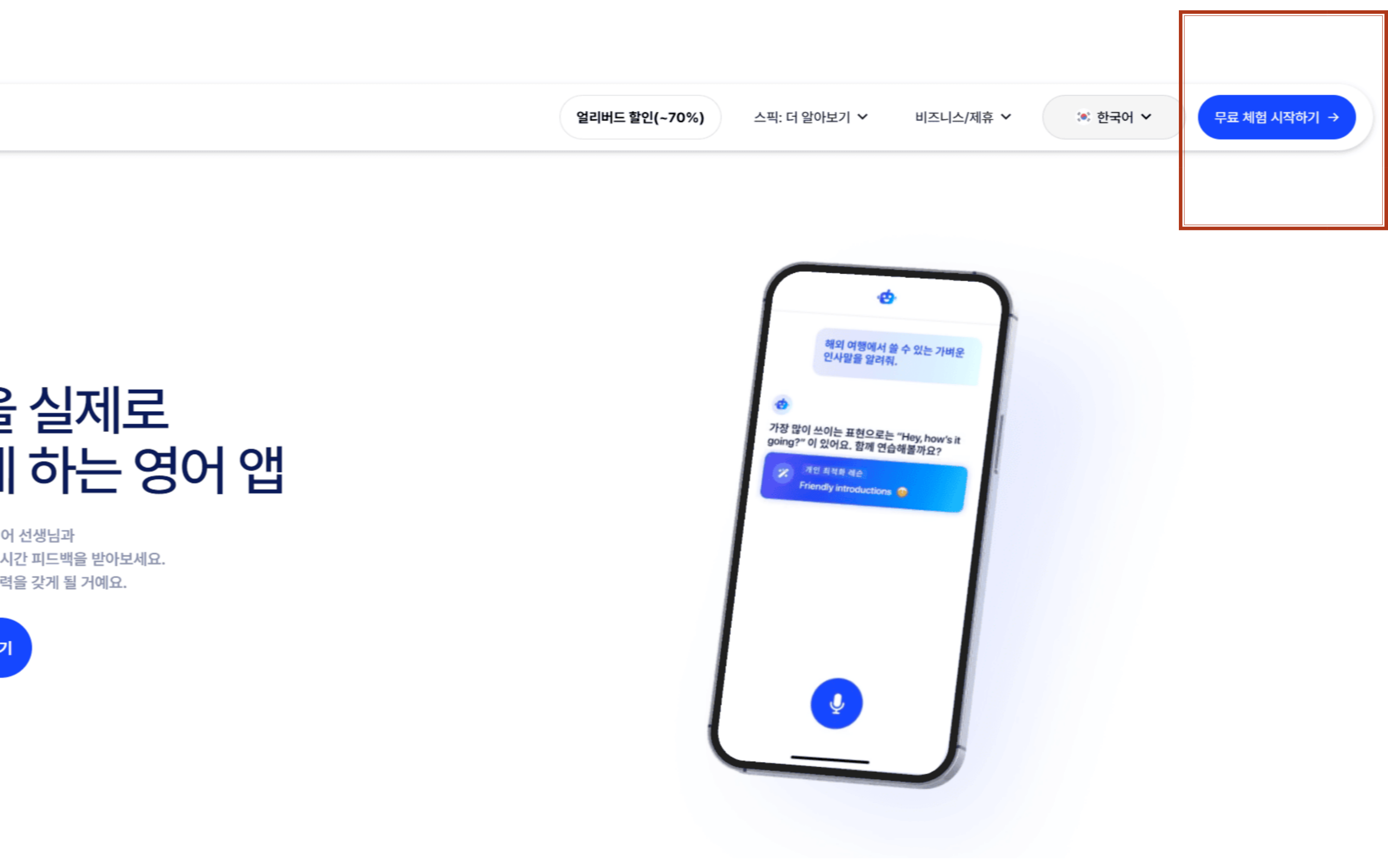 하버드 출신이 만든 AI 영어 학습 솔루션. 맞춤 수업부터 원어민 없는 프리토킹 수업까지 제공하여 기존 영어 인강보다 10배 많은 스피킹 연습이 가능합니다.