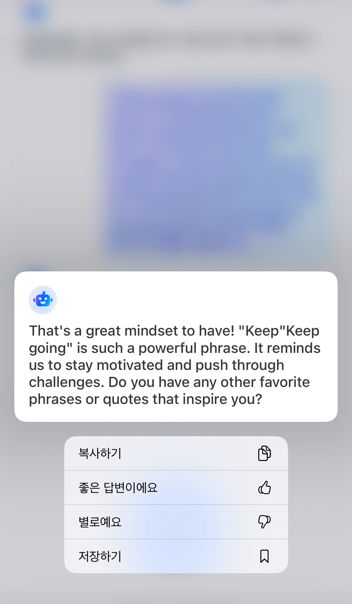 이렇게 대화를 이끌어주고, 제가 영어로 아무말 대잔치를 하면, 친절하게 영문으로 수정하여 제안해줍니다. 보통 머리에서 안나와도 얘기를 막하다보면, 나중에 이렇게 멋드러지게 수정해줍니다.