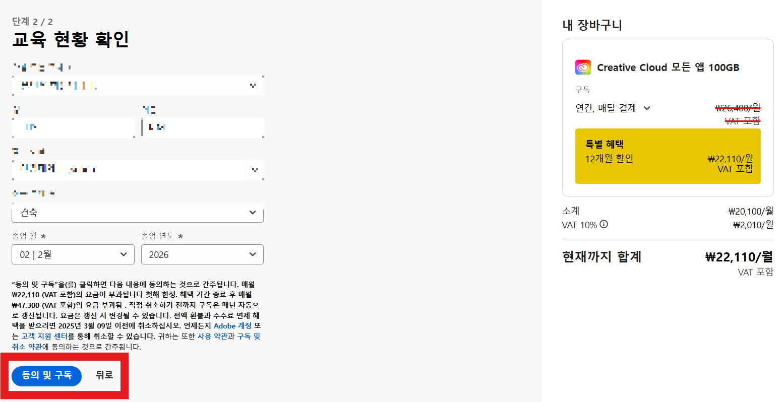 어도비 학생 할인받기 마무리