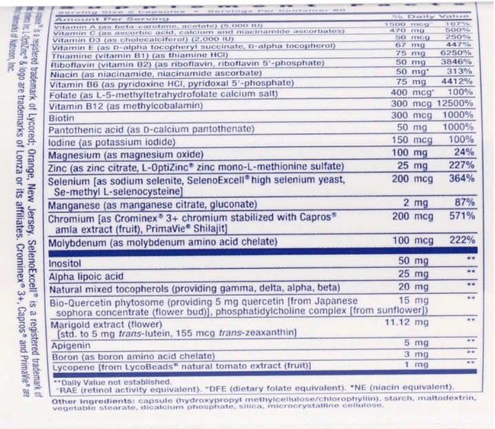 눈 보호를 위해 많은 분들이 섭취하시는 루테인과 지아잔틴이 들어가 있습니다. 또한 강력한 항산화 성분인 알파리포산, 라이코펜이 있어서 부가영양까지 챙기는 종합비타민이 되겠습니다.
