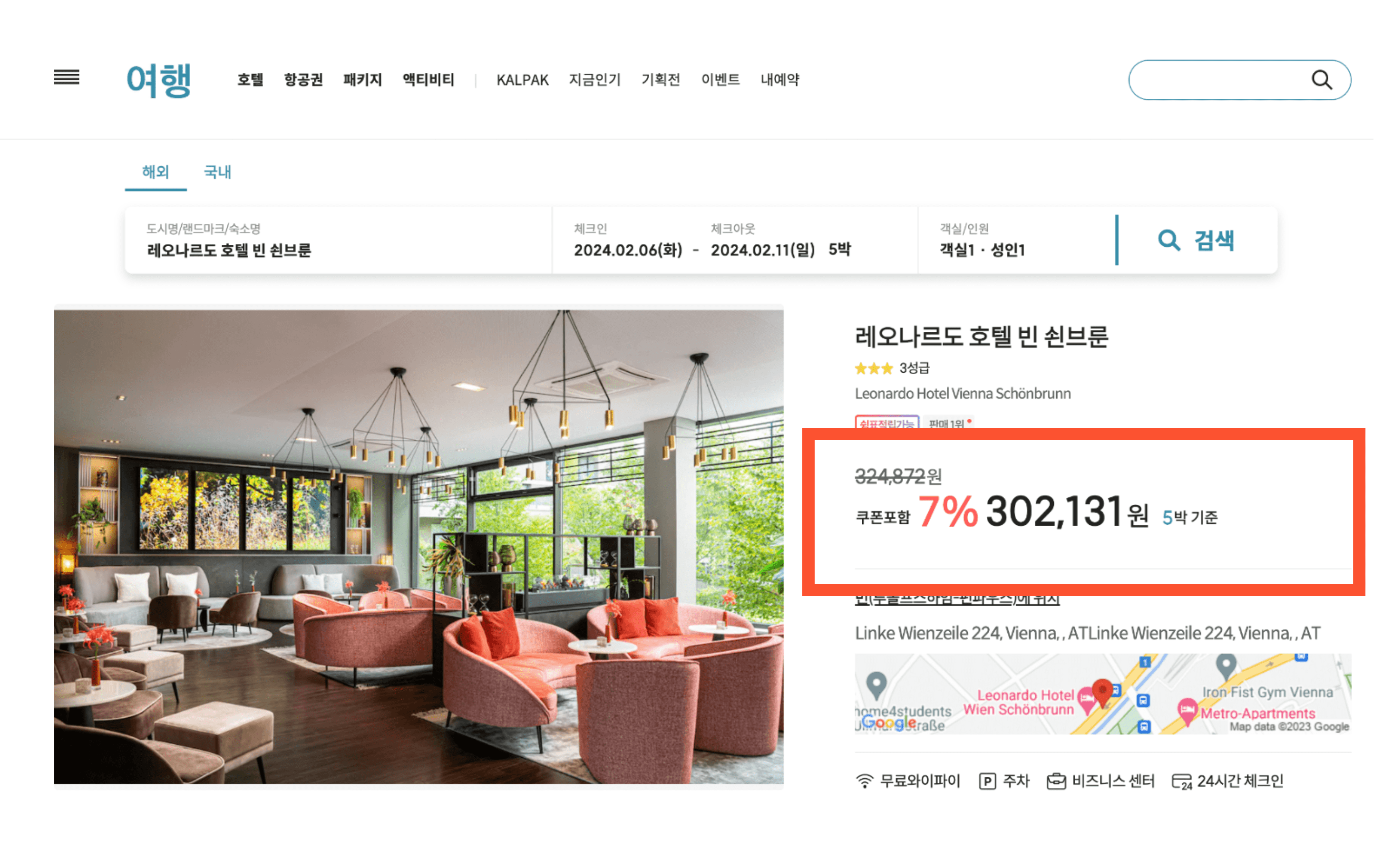 먼저 위에서 확인하던, 레오나르도 호텔 빈 쇤브룬의 최저가를 확인해 보겠습니다.