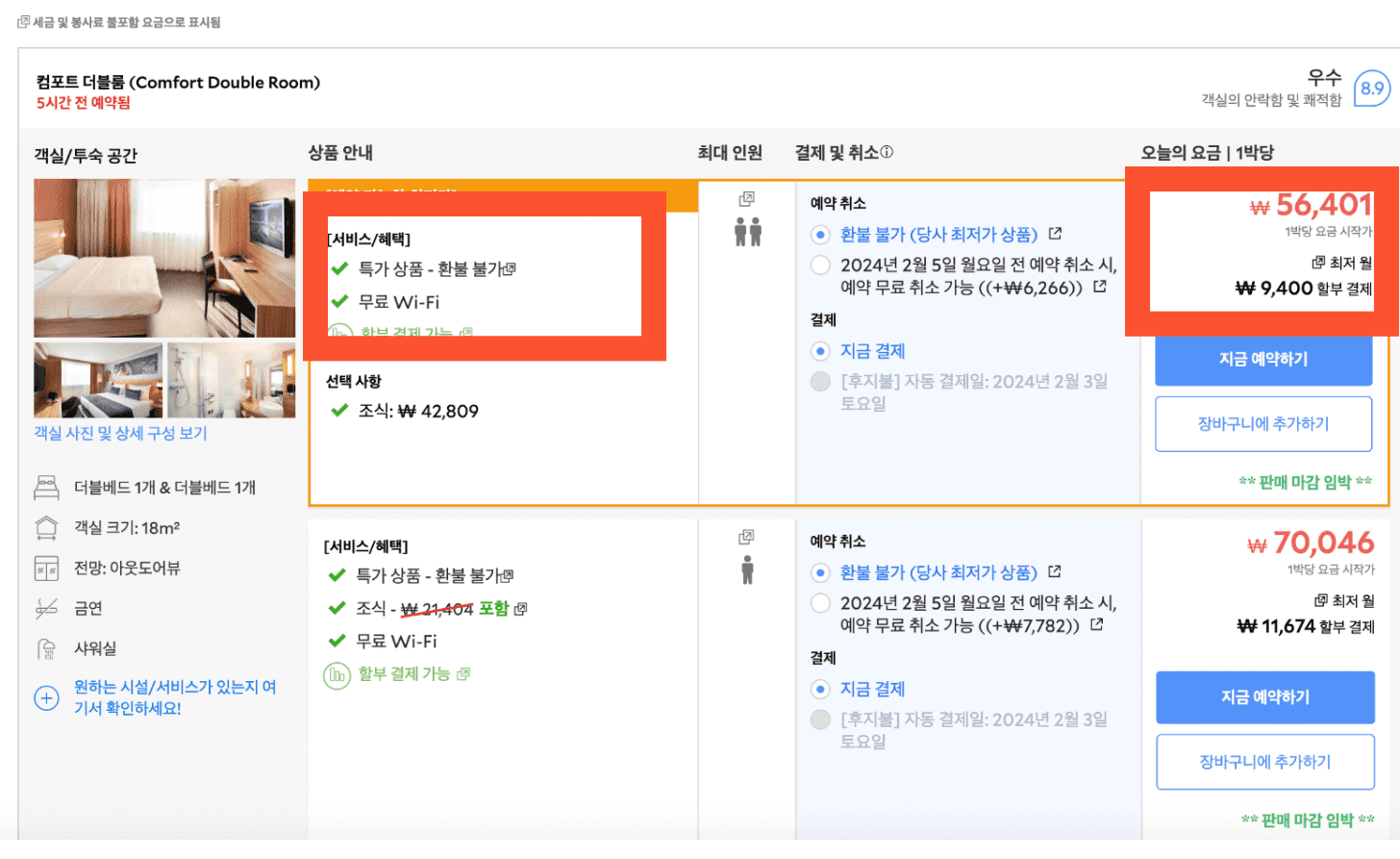 부킹닷컴 가격 확인하기