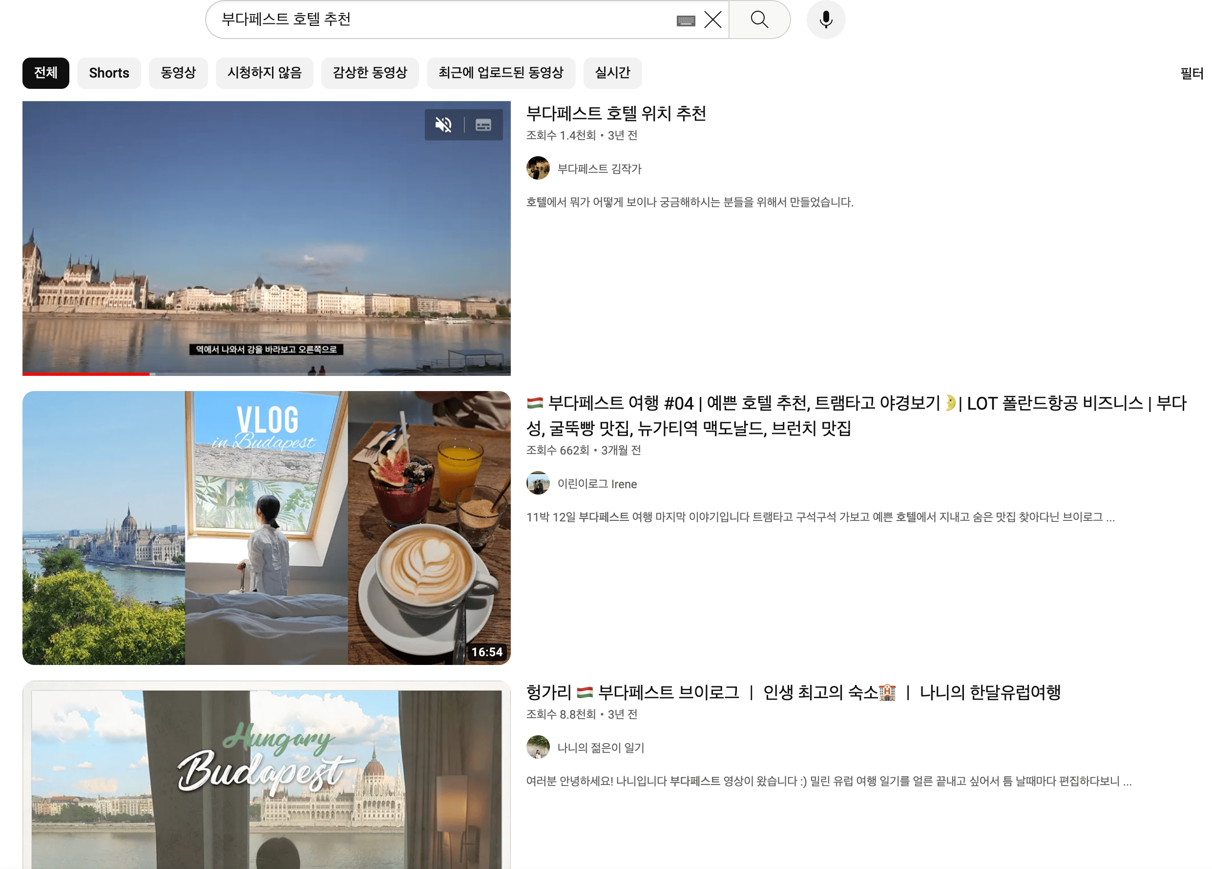 최근 유튜브도 검색 사이트로서 훌륭한 검색결과를 보여줍니다. 특히, 개인 여행 유튜버들이 많아지면서 대부분의 여행지의 호텔 추천 콘텐츠가 있습니다. 운이 좋으면, 호텔의 위치와 후기 정보까지 한 번에 얻을 수 있습니다.