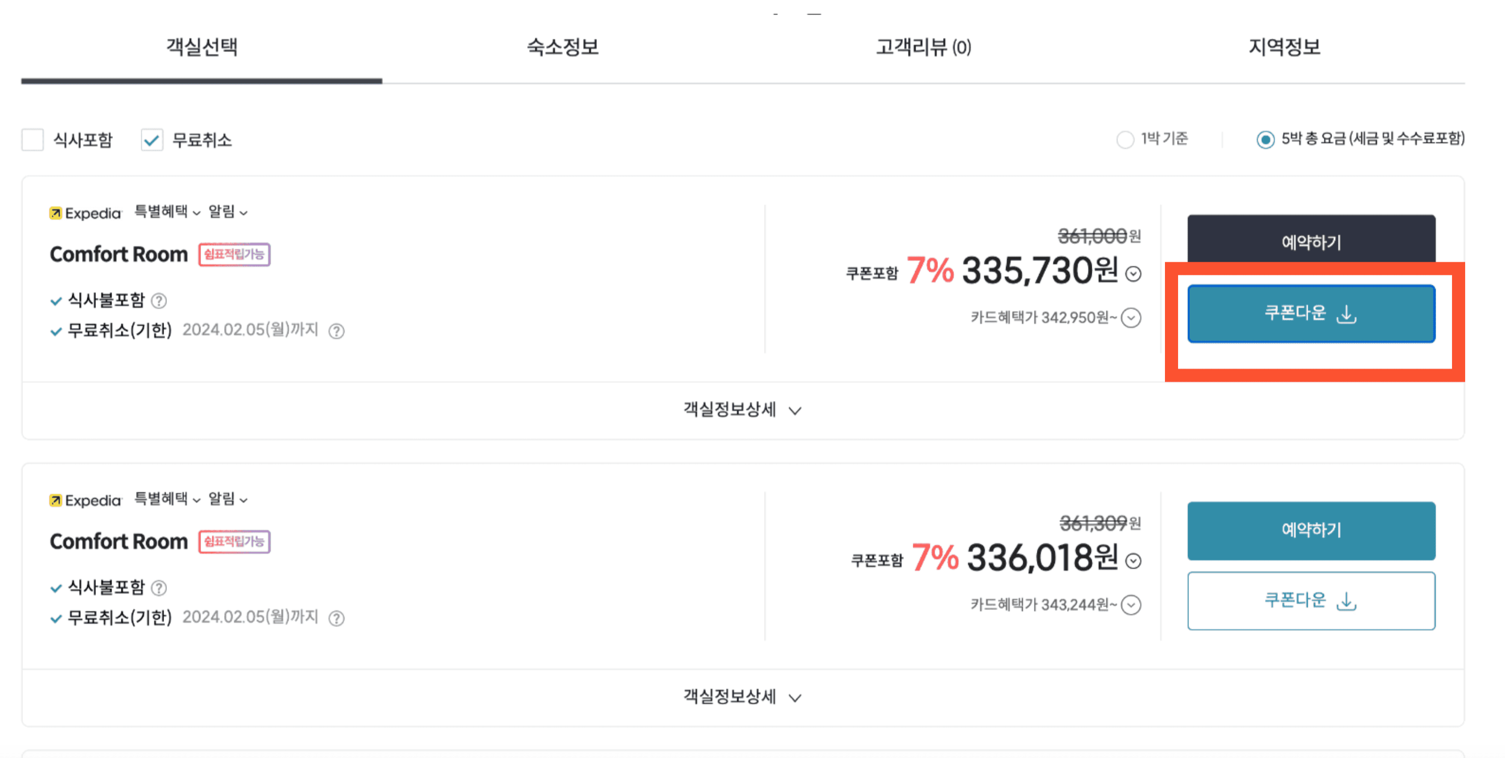 익스페디아 가격 확인하기